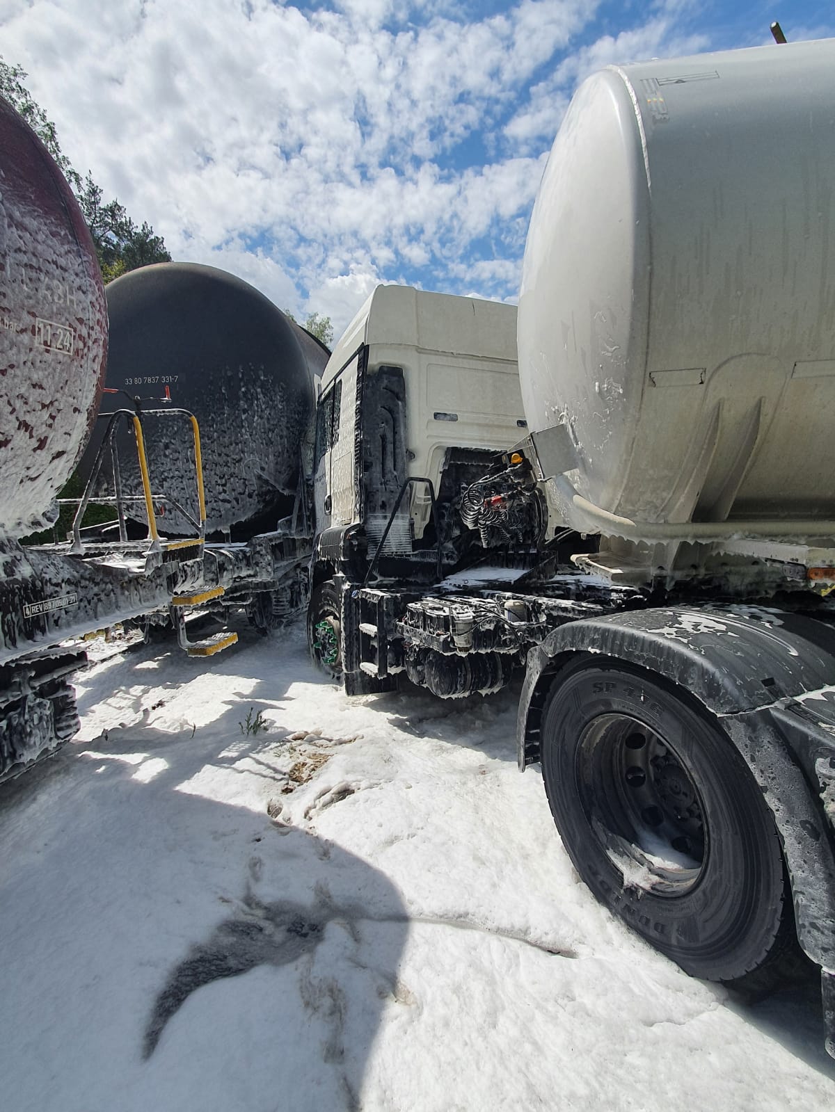 Dalsze działania straży pożarnej polegały na położeniu poduszki piany ciężkiej w celu wyeliminowania eskalacji zagrożenia.