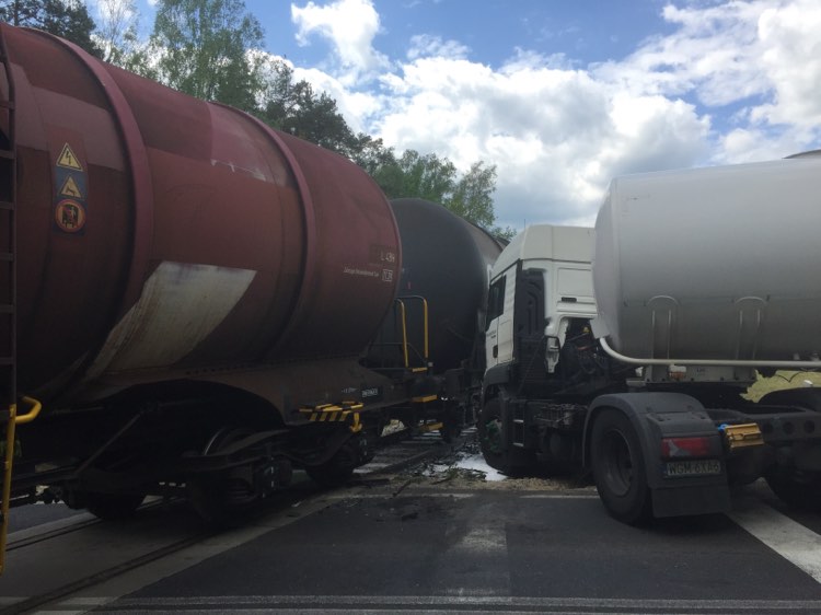 AUTOCYSTERNA WJECHAŁA POD POCIĄG