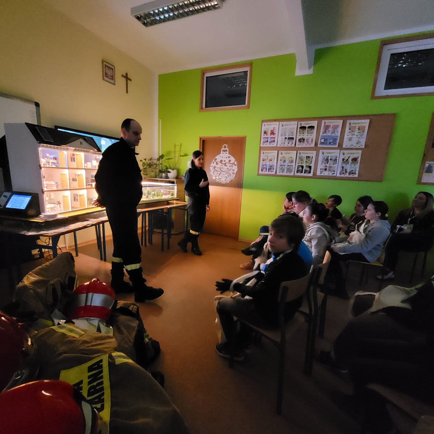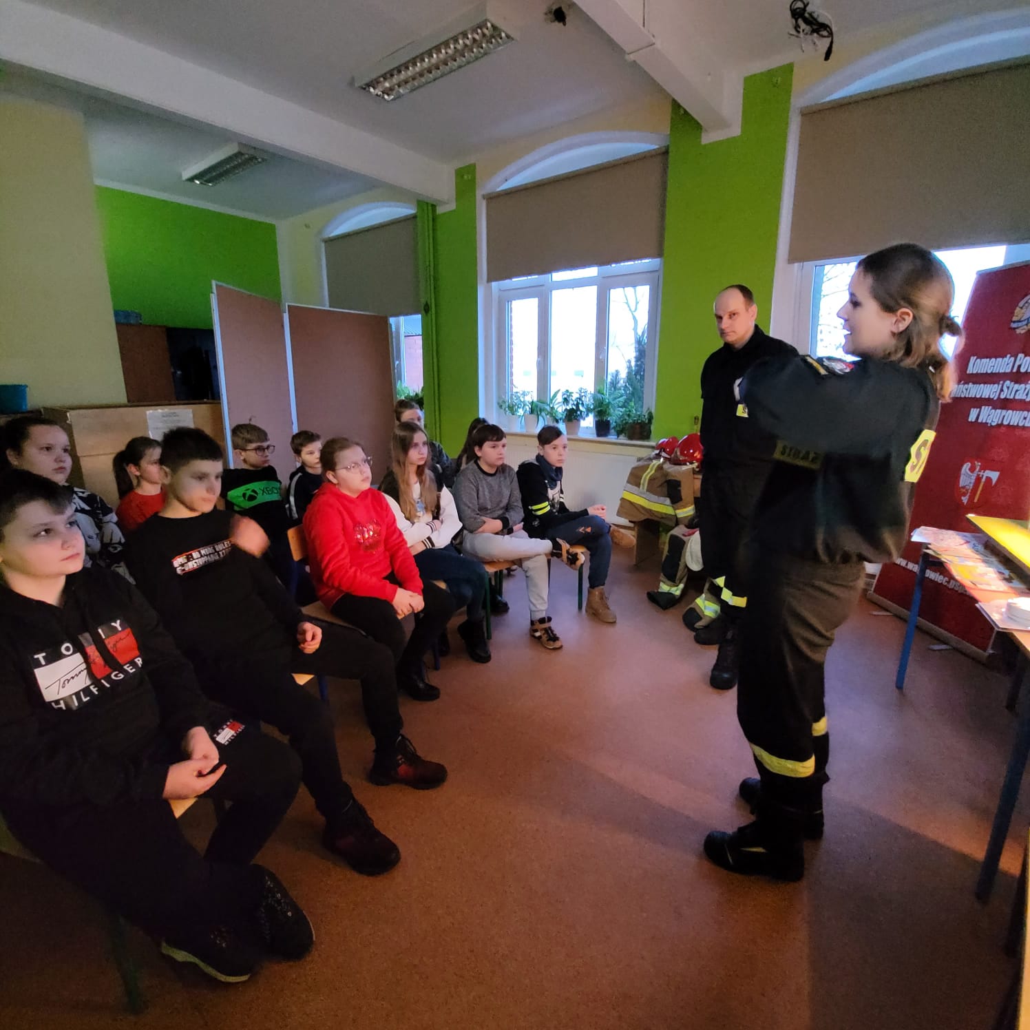 Głównym tematem były „Bezpieczne Ferie”. Strażacy przeprowadzili profilaktyczne pogadanki na temat bezpieczeństwa podczas zabaw na zamarzniętych akwenach, zabaw na śniegu czy podczas zorganizowanych wyjazdów zimowych. Wspomnieli także o sezonie grzewczym i o zagrożeniach z nim związanych.