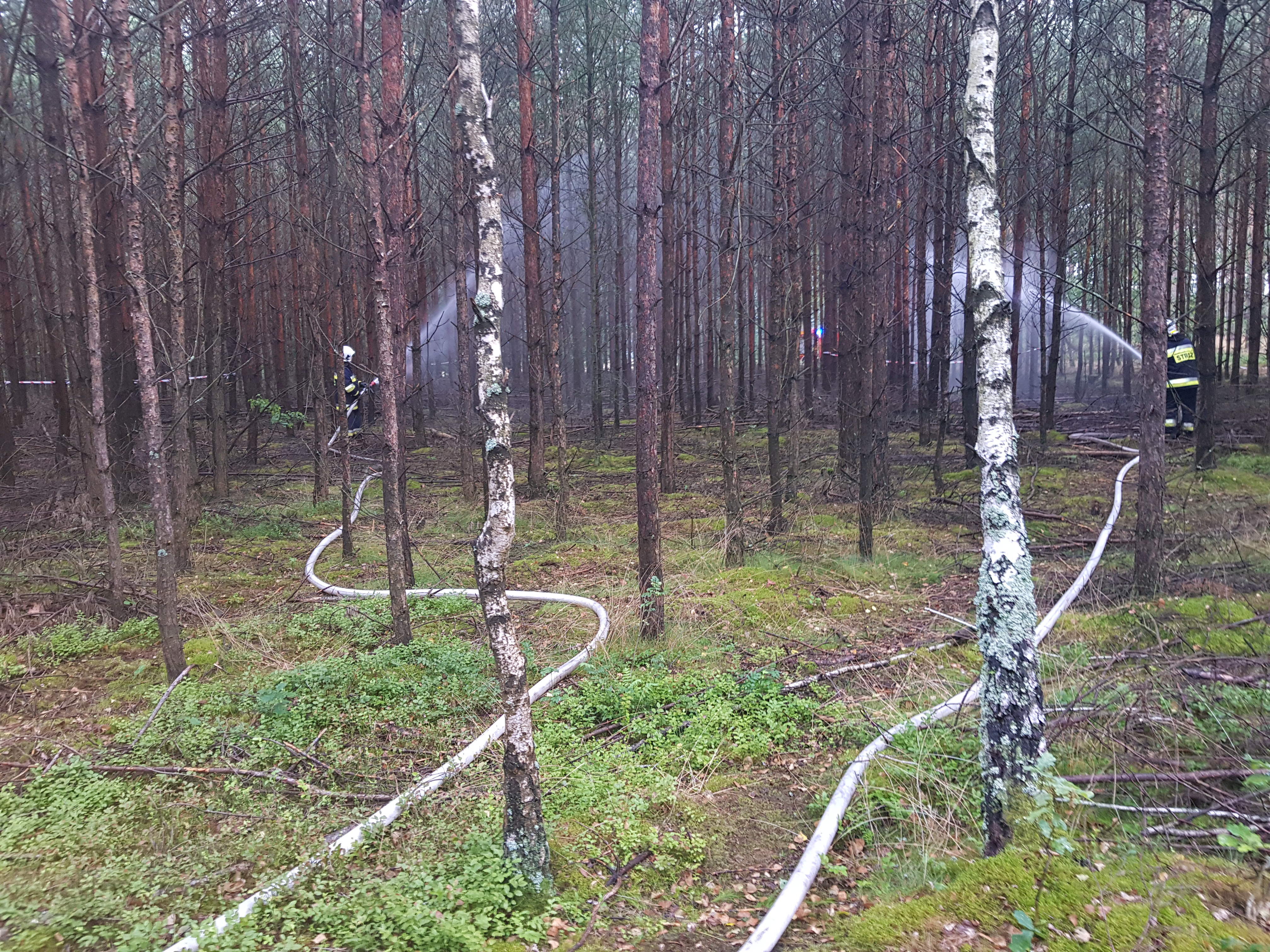 Całości wykonywanych zadań praktycznych przyglądał się Komendant Powiatowy PSP st. bryg. Zbigniew Dziwulski wspólnie z Nadleśniczym Nadleśnictwa Durowo panem Sławomirem Kołaczem.