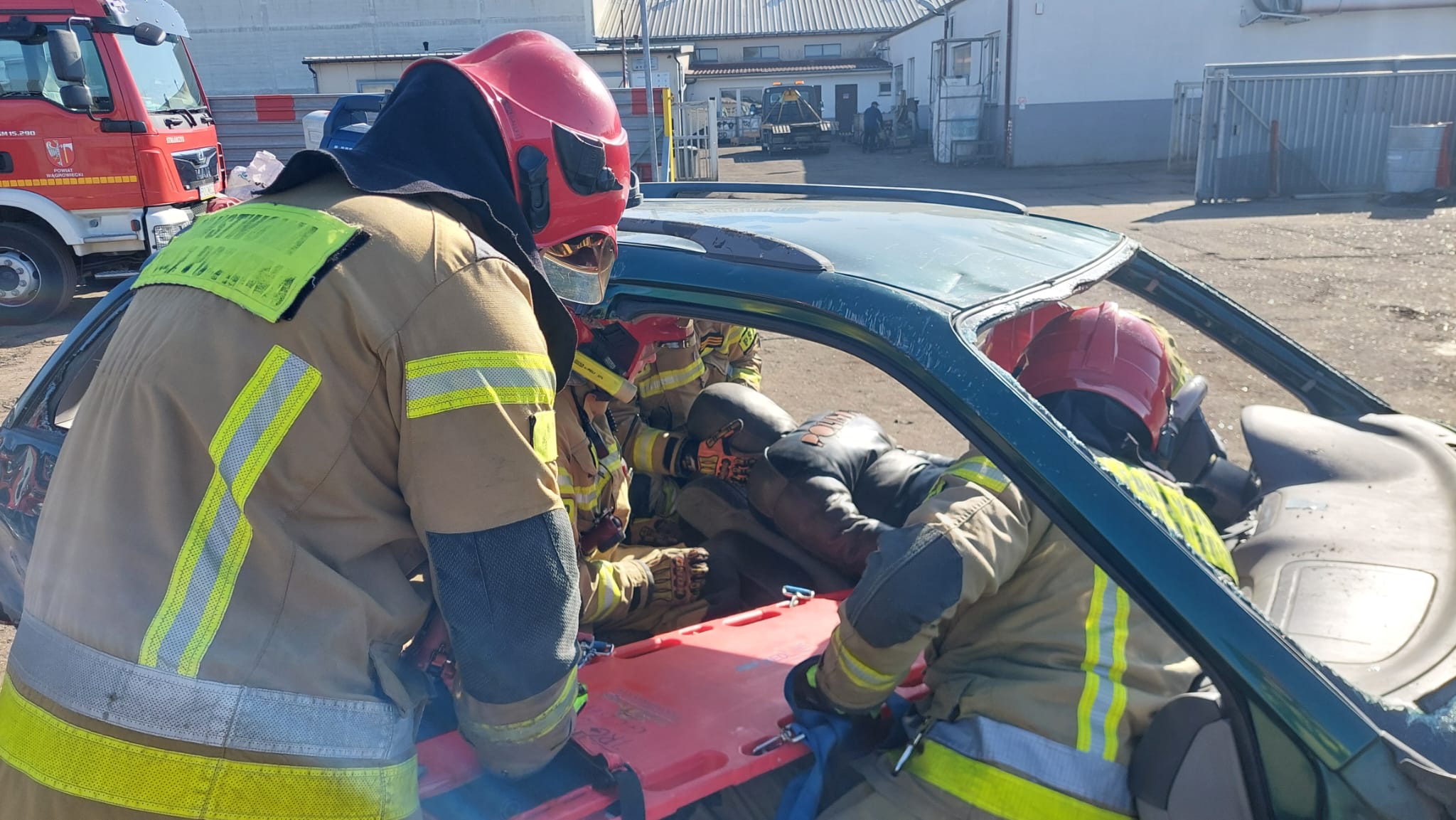 Szkolenie w tak realistycznych warunkach było możliwe dzięki życzliwości właścicieli firmy Lemański Bolesław ZPHU – Kasacja Pojazdów, którzy od wielu lat wspierają działania Komendy Powiatowej PSP w Wągrowcu oraz jednostek Ochotniczych Straży Pożarnych. Dzięki ich zaangażowaniu i udostępnianiu pojazdów przeznaczonych do kasacji strażacy mogą regularnie doskonalić swoje umiejętności podczas praktycznych ćwiczeń.