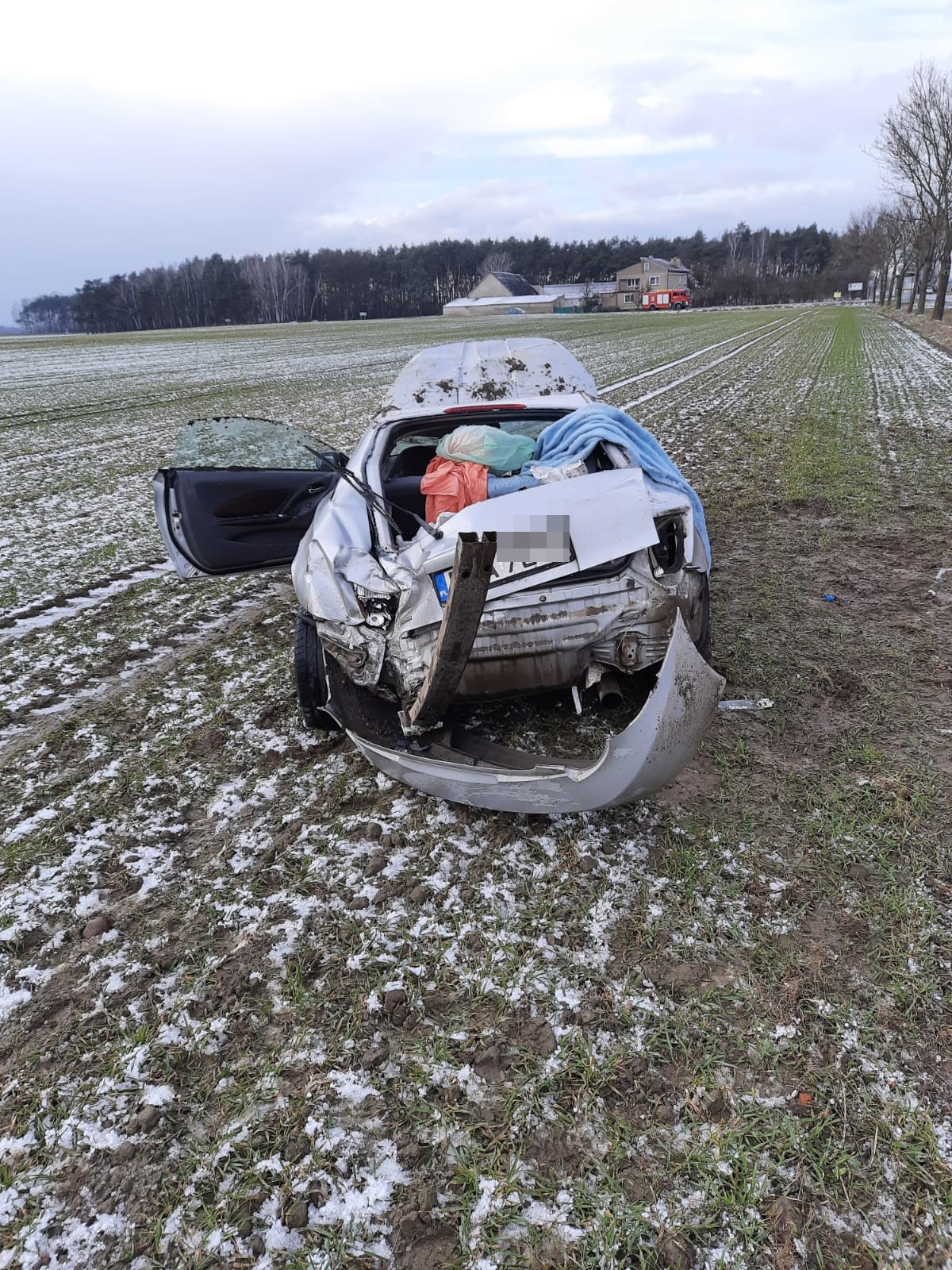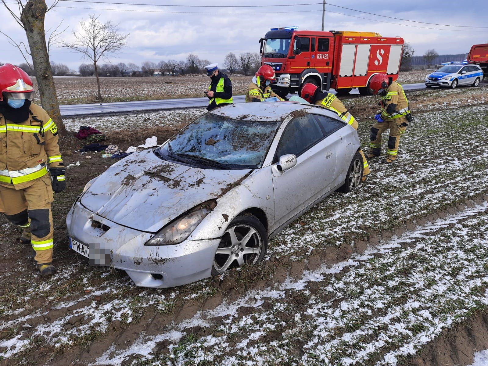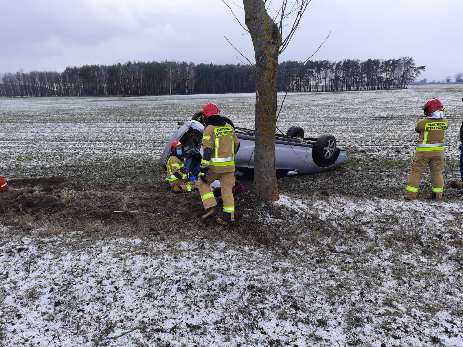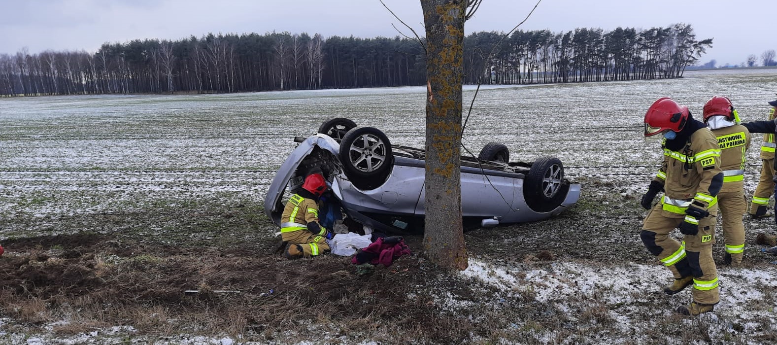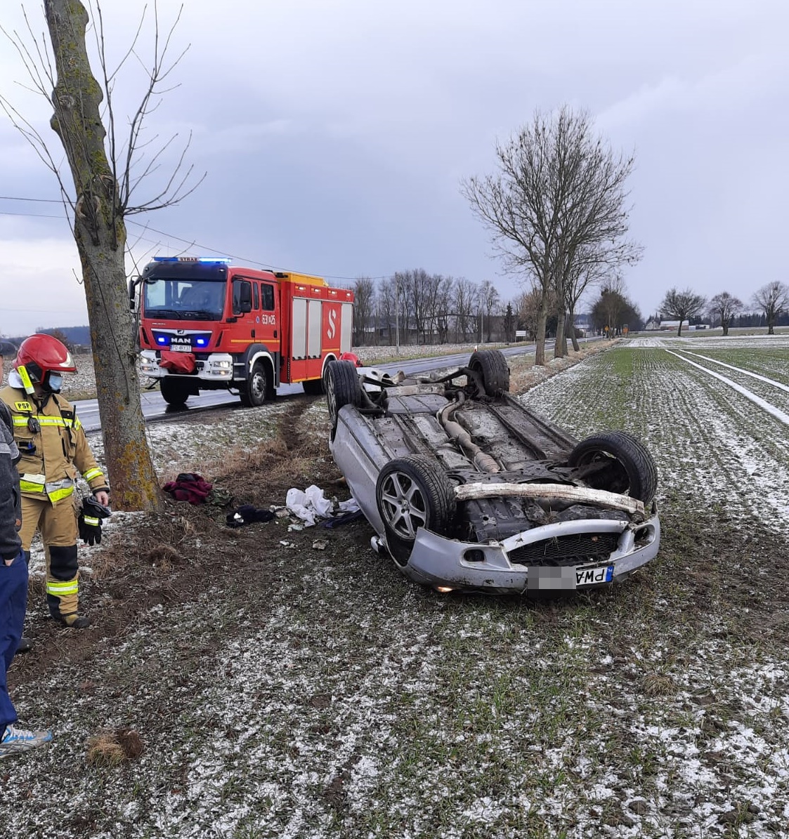 Po dojeździe na miejsce zdarzenia zastępów straży pożarnej ustalono, że pojazd osobowy po dachowaniu znajduje się poza drogą w pozycji „na dachu”, kierowca odmówił udzielenia kwalifikowanej pomocy.