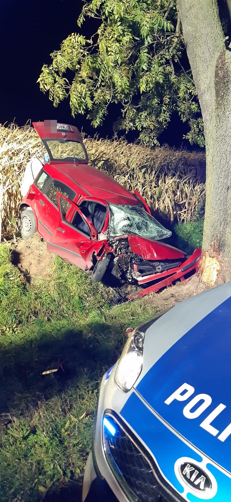 Po przyjeździe straży pożarnej na miejsce zdarzenia rozbity samochód osobowy znajdował się poza drogą, a kierowca o własnych siłach opuścił rozbity wrak pozostając w bezpiecznym miejscu.