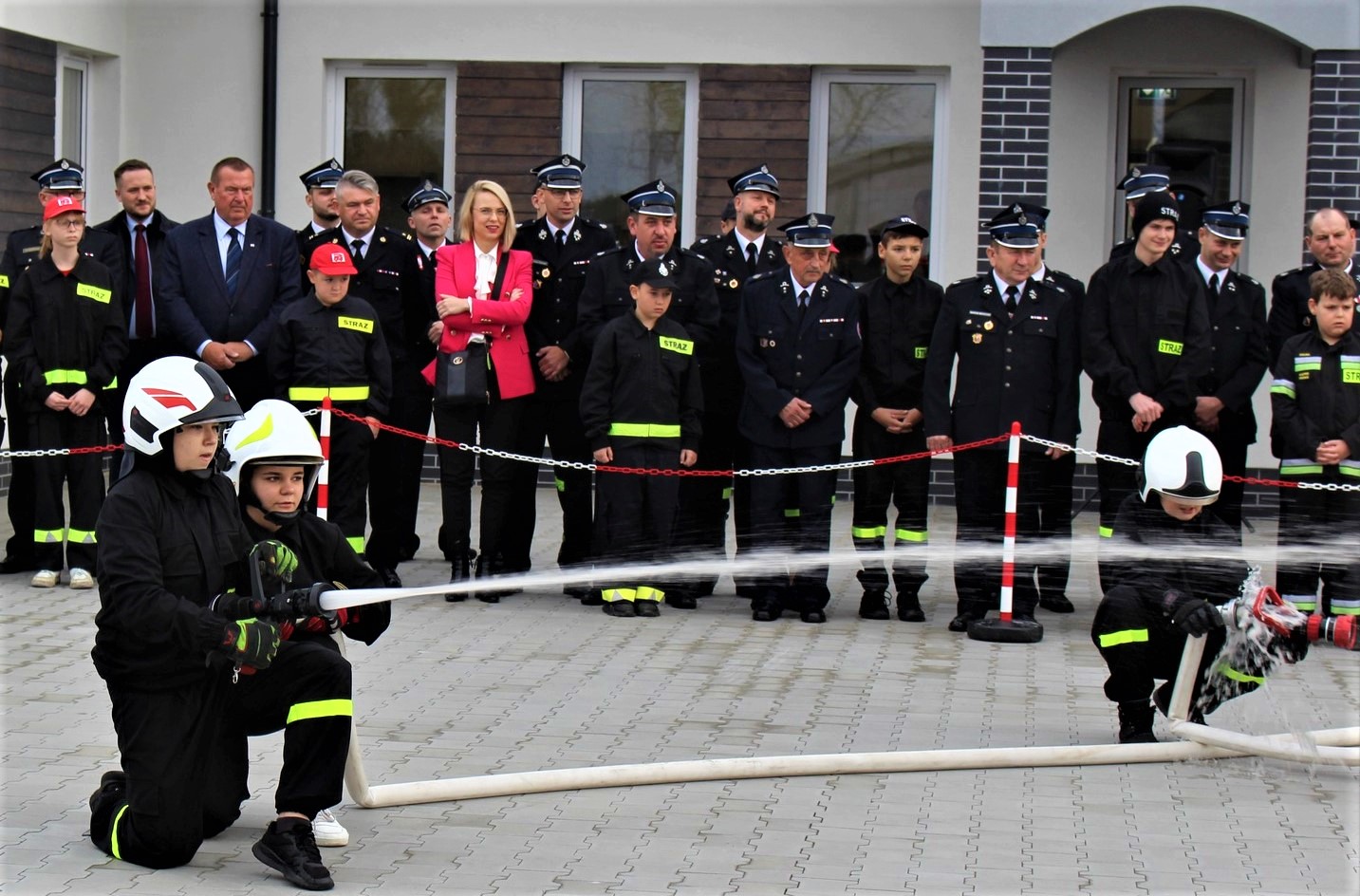 W trakcie uroczystej zbiórki zgromadzeni gości i przedstawiciele OSP mogli podziwiać członków Młodzieżowej Drużyny Pożarniczej z jednostki Ochotniczej Straży Pożarnej Budzyń przeprowadzili pokaz gaszenia pozorowanego pożaru.