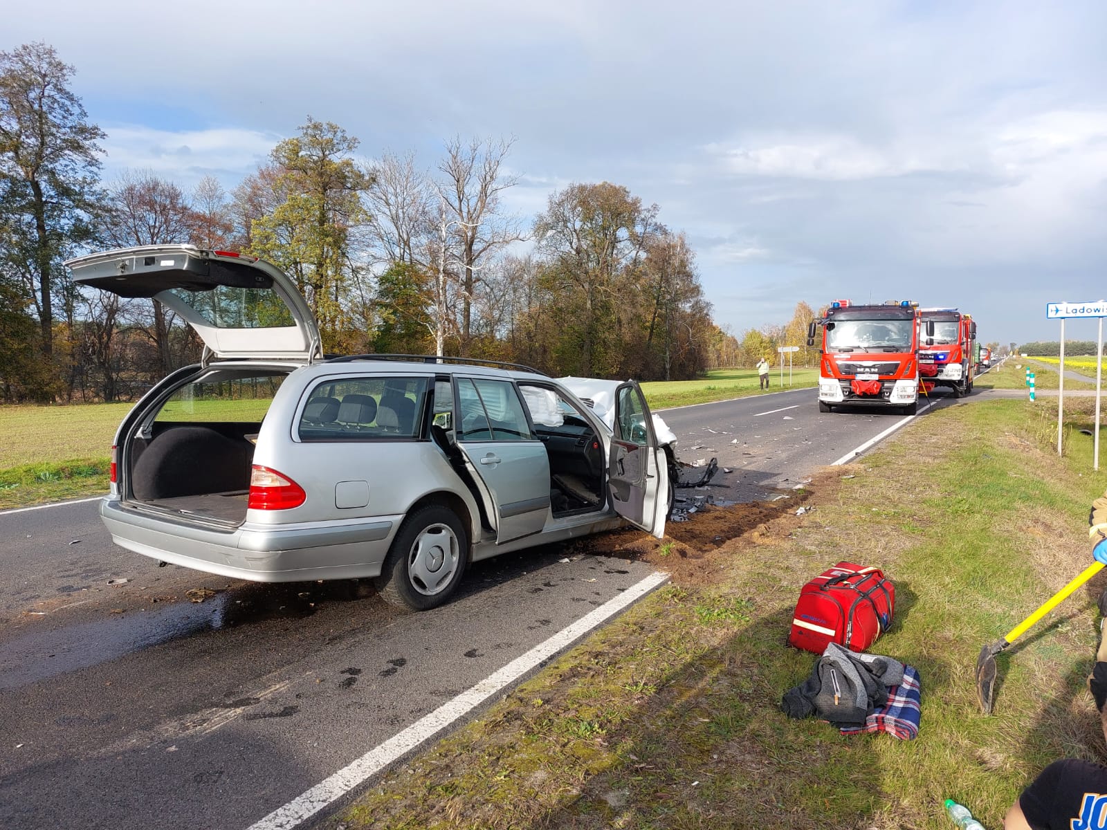 28 październik br. Stanowisko Kierowania Komendanta Powiatowego PSP w Wągrowcu otrzymało zgłoszenie o wypadku drogowym w miejscowości Łęgowo na DW 196.