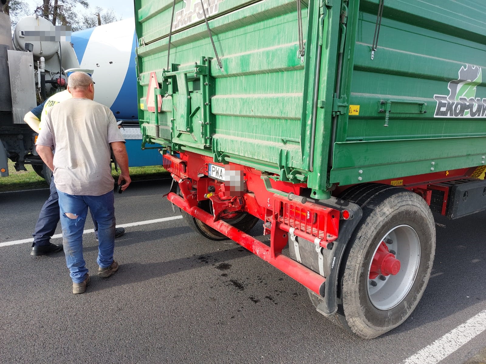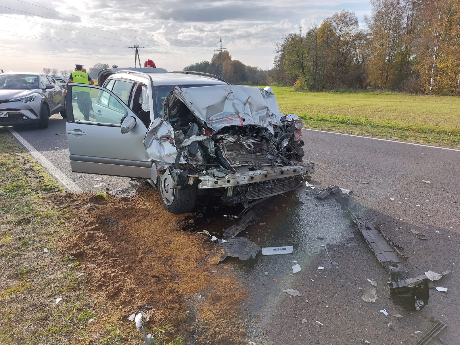 Po dojeździe JOP na miejsce zdarzenia zastano osobowego Mercedesa, który uderzył w tył przyczepy rolniczej. Kierujący pojazdem osobowym z widocznymi krwawieniami z nosa i ust oraz bólem w klatce piersiowej.