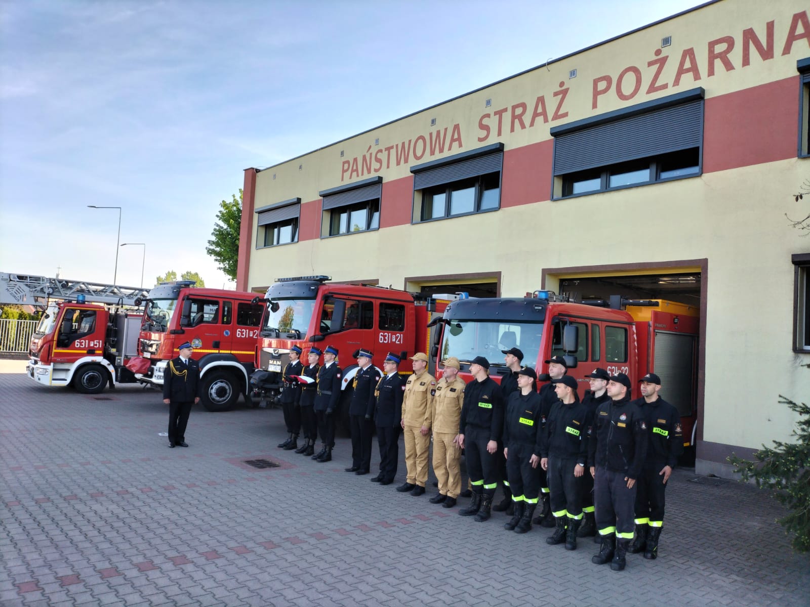 W uroczystej zmianie służbowej udział wzięli mł. bryg. Jacek Rochowiak - Komendant PSP w Wągrowcu oraz st. kpt. Piotr Łuczak - Z-ca Komendanta PSP w Wągrowcu.