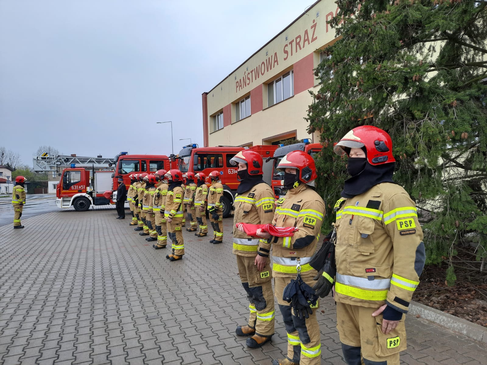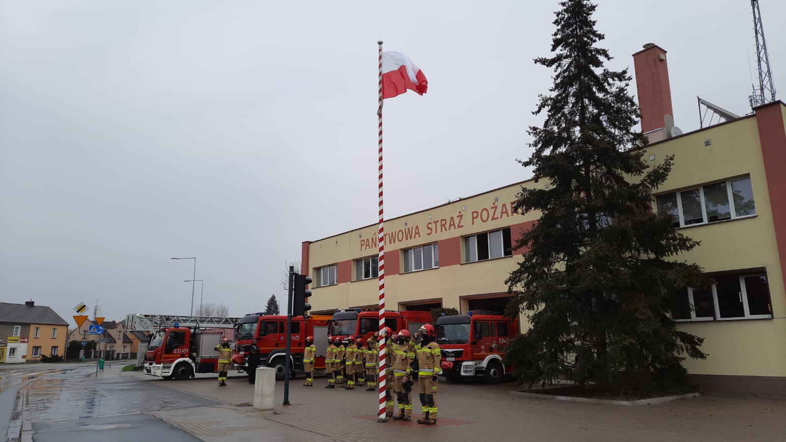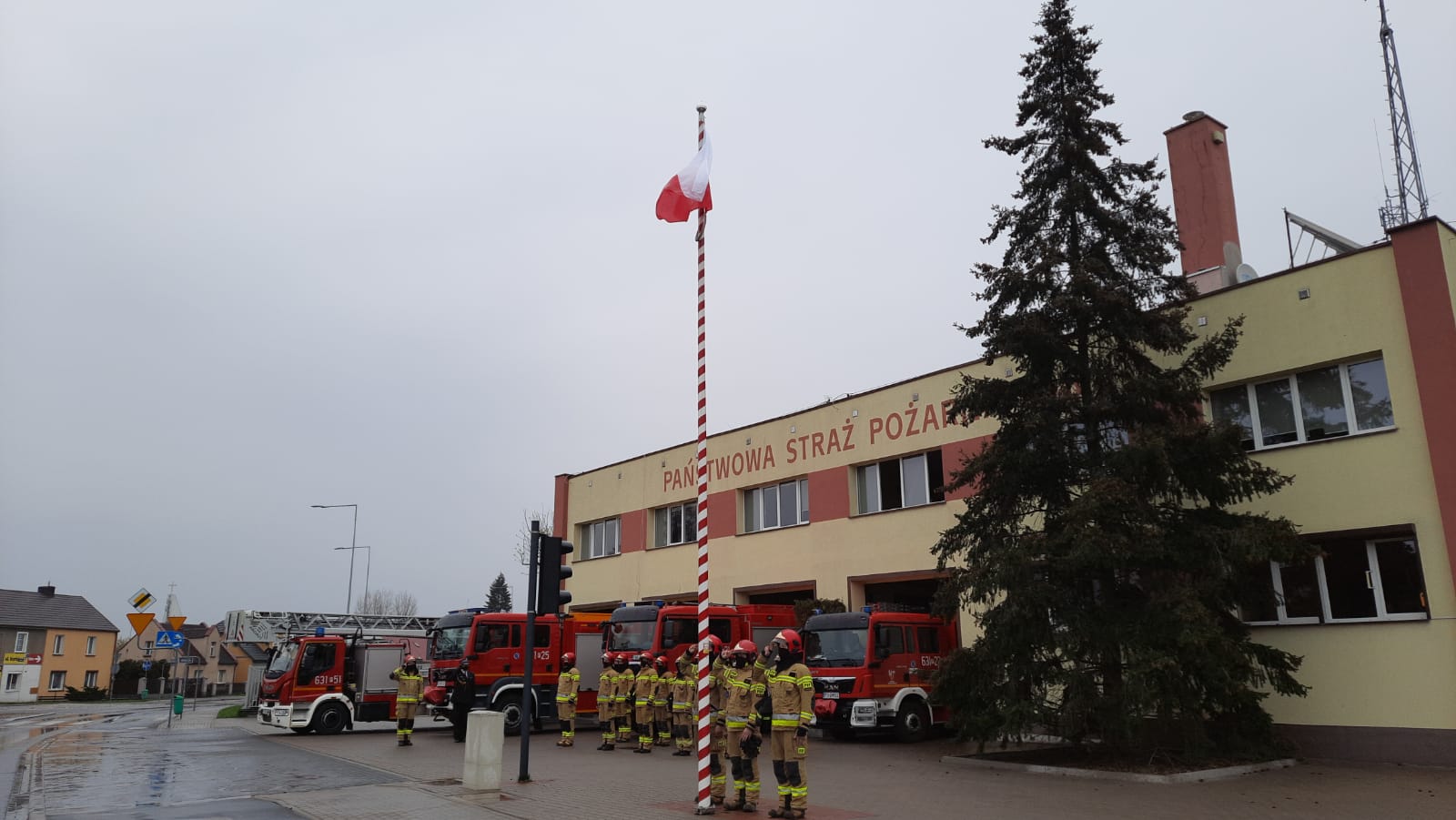 Apel rozpoczął się od złożenia meldunku Komendantowi Powiatowemu PSP w Wągrowcu st. bryg. Zbigniewowi Dziwulskiemu. Po meldunku strażacy wyznaczeni do pocztu flagowego dokonali wciągnięcia flagi państwowej na maszt usytuowany przed budynkami Komendy Powiatowej Państwowej Straży Pożarnej.