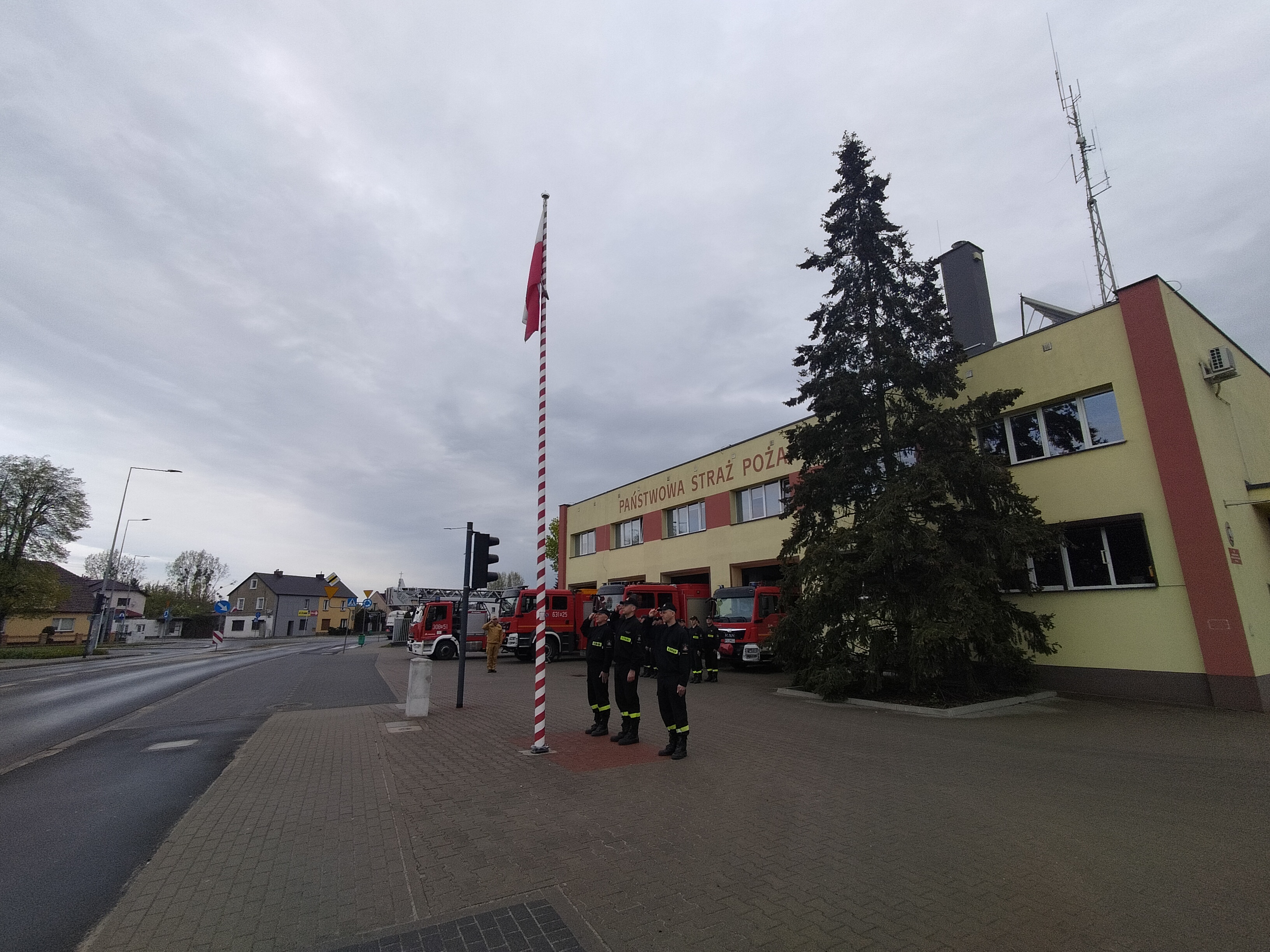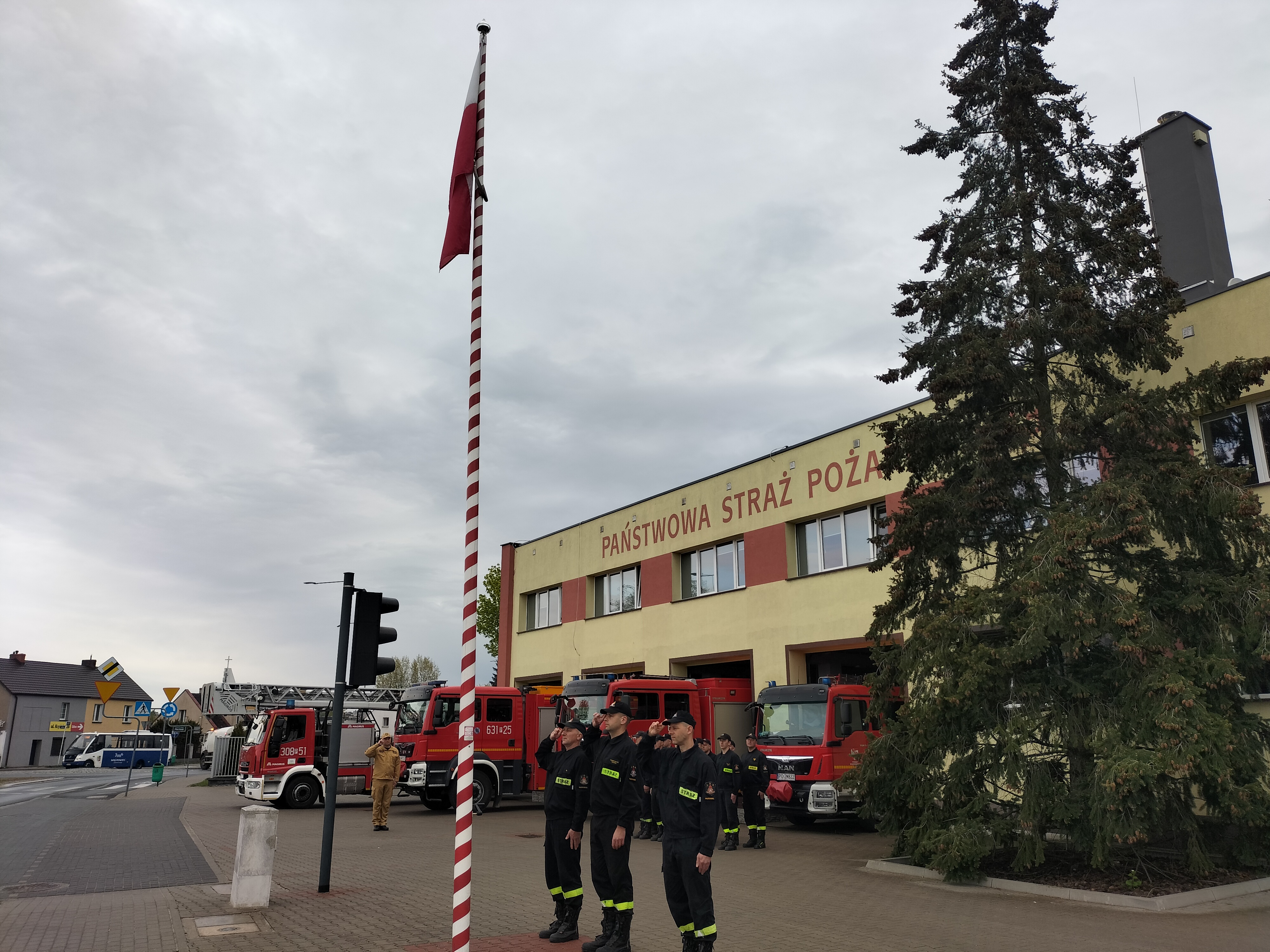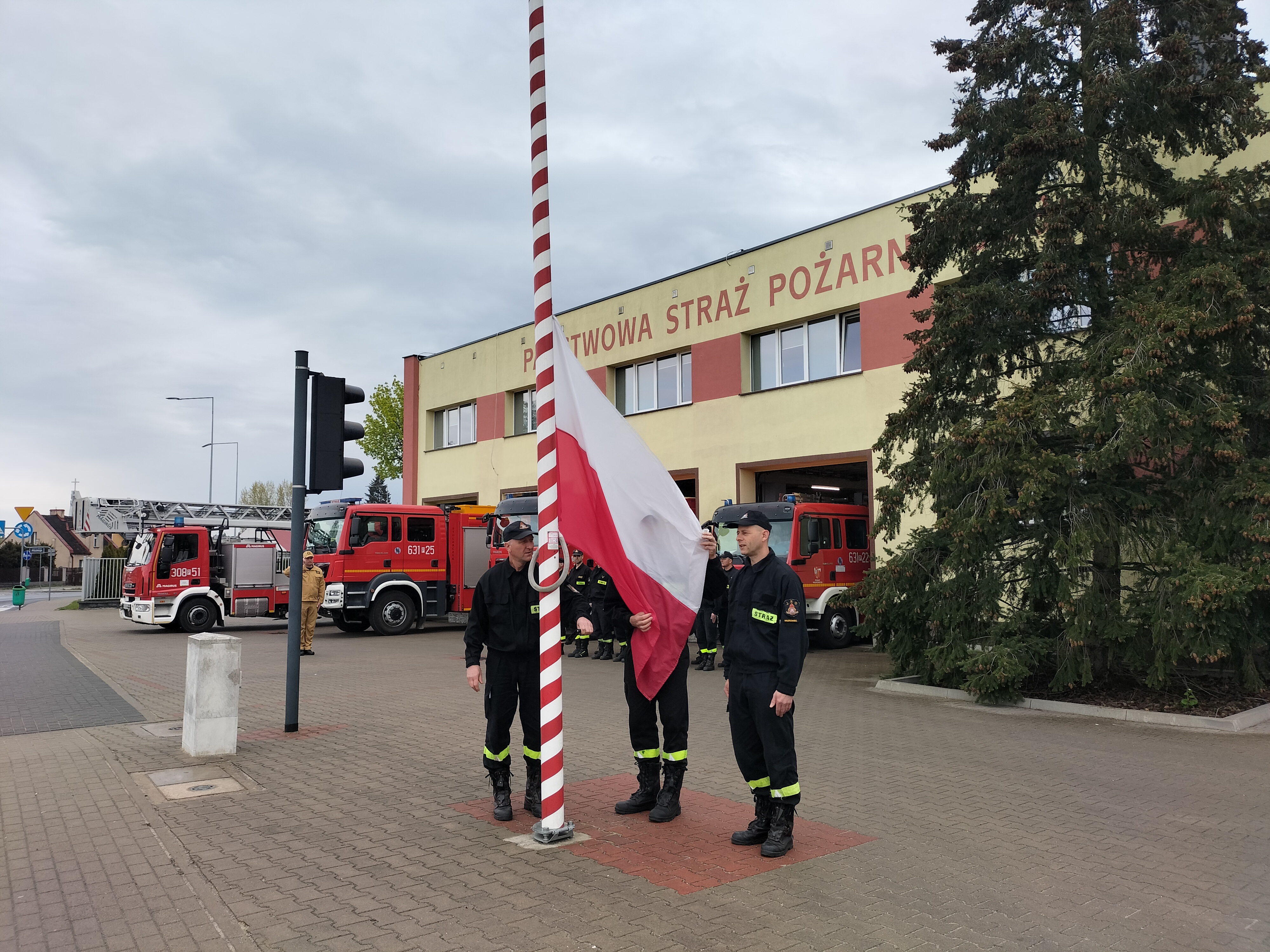 2 maja wągrowieccy strażacy uroczystą zmianą służby oraz wciągnięciem flagi państwowej na maszt uczcili Dzień Flagi Rzeczypospolitej Polskiej.