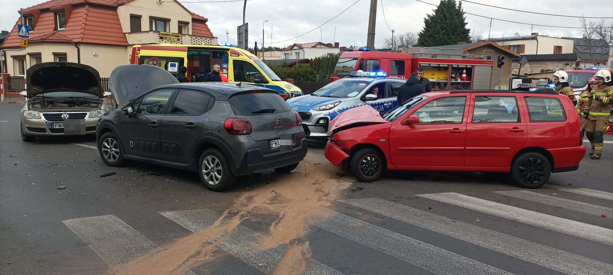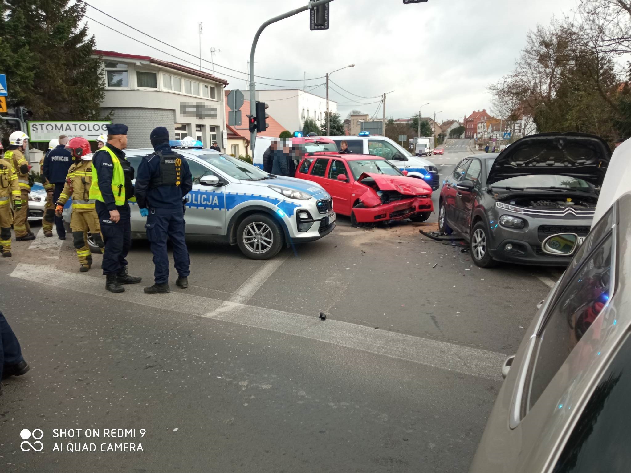 Po przyjeździe zastępów straży pożarnej na miejsce zdarzenia okazało się, że zderzyły się trzy samochody osobowe blokując całkowicie przejazd na skrzyżowaniu DW 196. Na miejscu obecni policjanci. Kierujący Działaniami Ratowniczymi uzyskał informację od policjanta, że przed zdarzeniem odbywał się pościg policji, za pojazdem marki Volkswagen Polo, którym podróżowały trzy osoby.