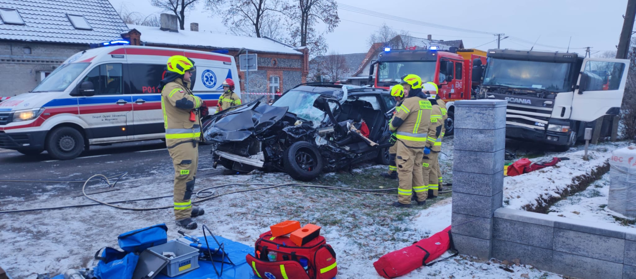 17 grudnia br. o godzinie 9. do Stanowiska Kierowania Komendanta Powiatowego PSP wpłynęło zgłoszenie o wypadku samochodu osobowego z cysterną do przewożenia mleka w miejscowości Niemczyn.