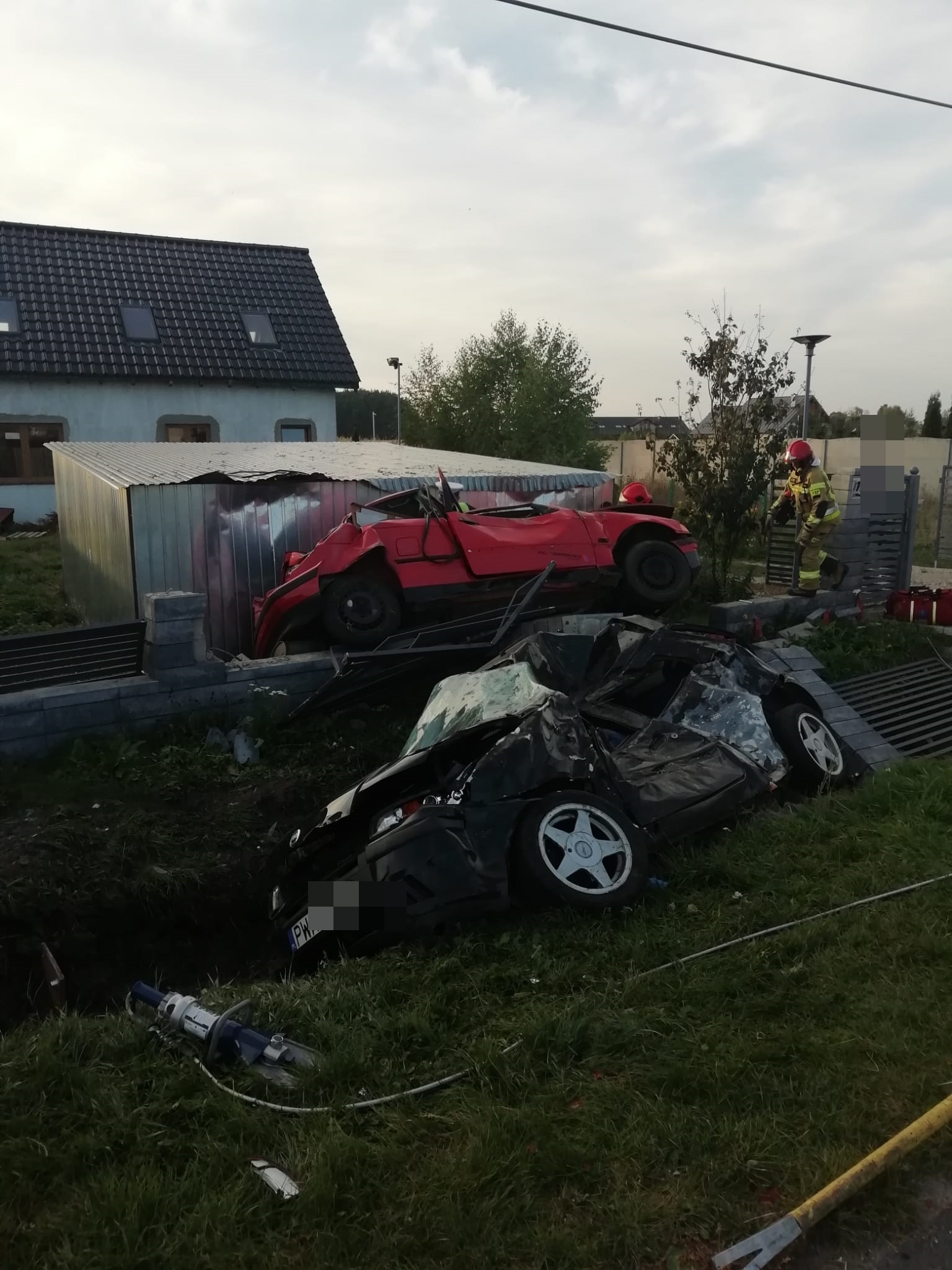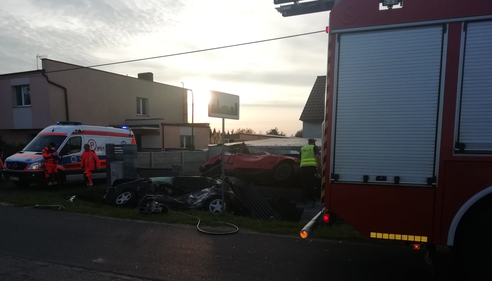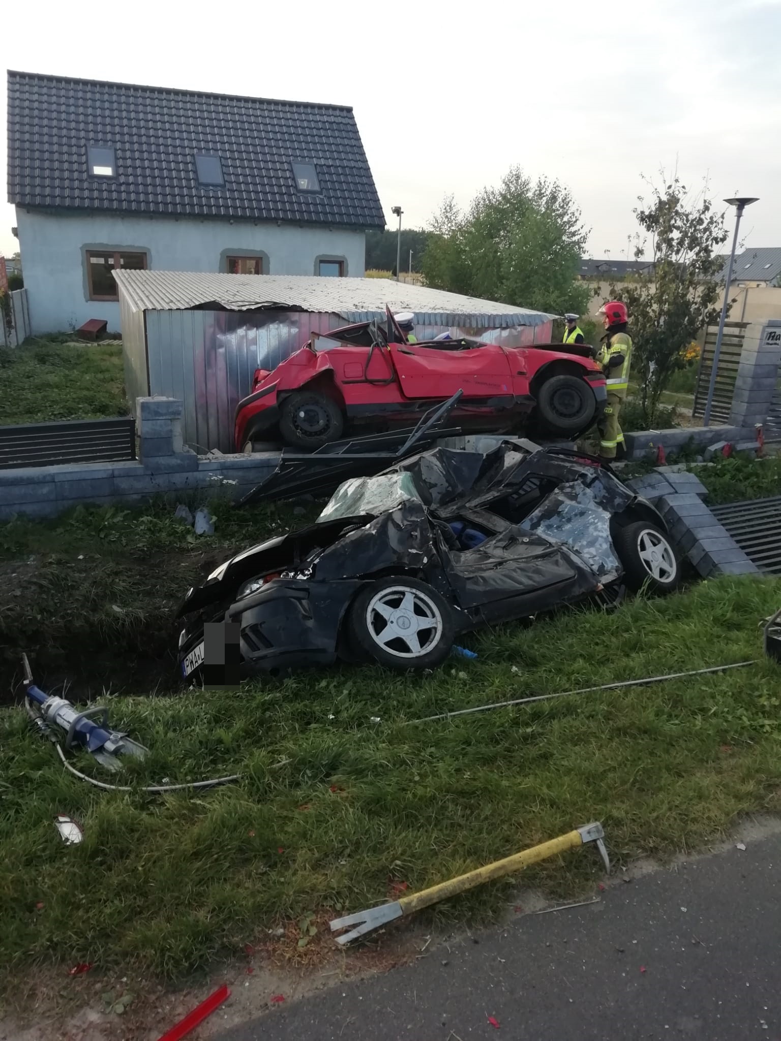 Po dojeździe straży pożarnej na miejsce wypadku okazało się, że w zdarzeniu udział brały dwa pojazdy osobowe. Jak ustalił Kierujący Działaniami Ratowniczymi, kierowca BMW uderzył z zaparkowany na poboczu drogi pojazd osobowy w wyniku czego pojazdy zostały wyrzucone poza drogę na prywatną posesję. Obecna na miejscu załoga Zespołu Ratownictwa Medycznego stwierdziła brak oznak życiowych kierowcy BMW oraz podjęła decyzję o odstąpieniu od medycznych czynności ratunkowych, że względu na liczne obrażenia.