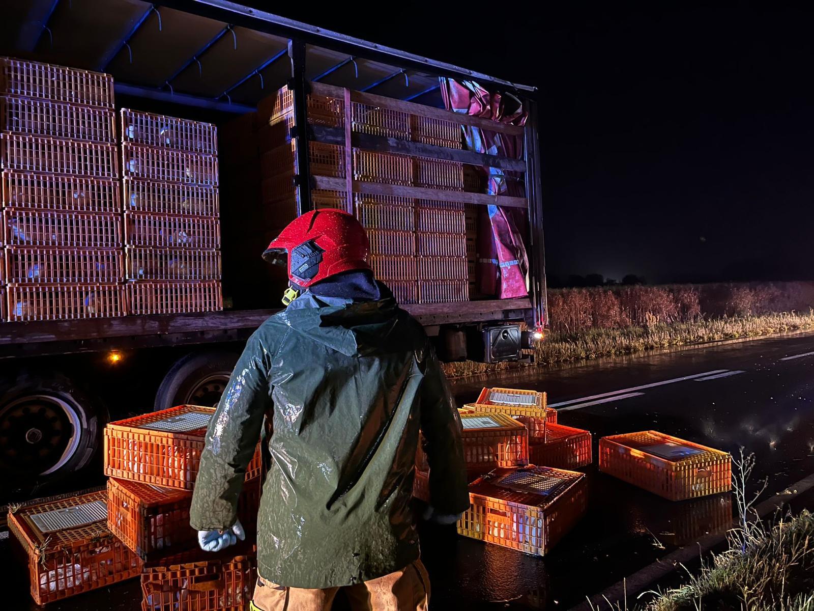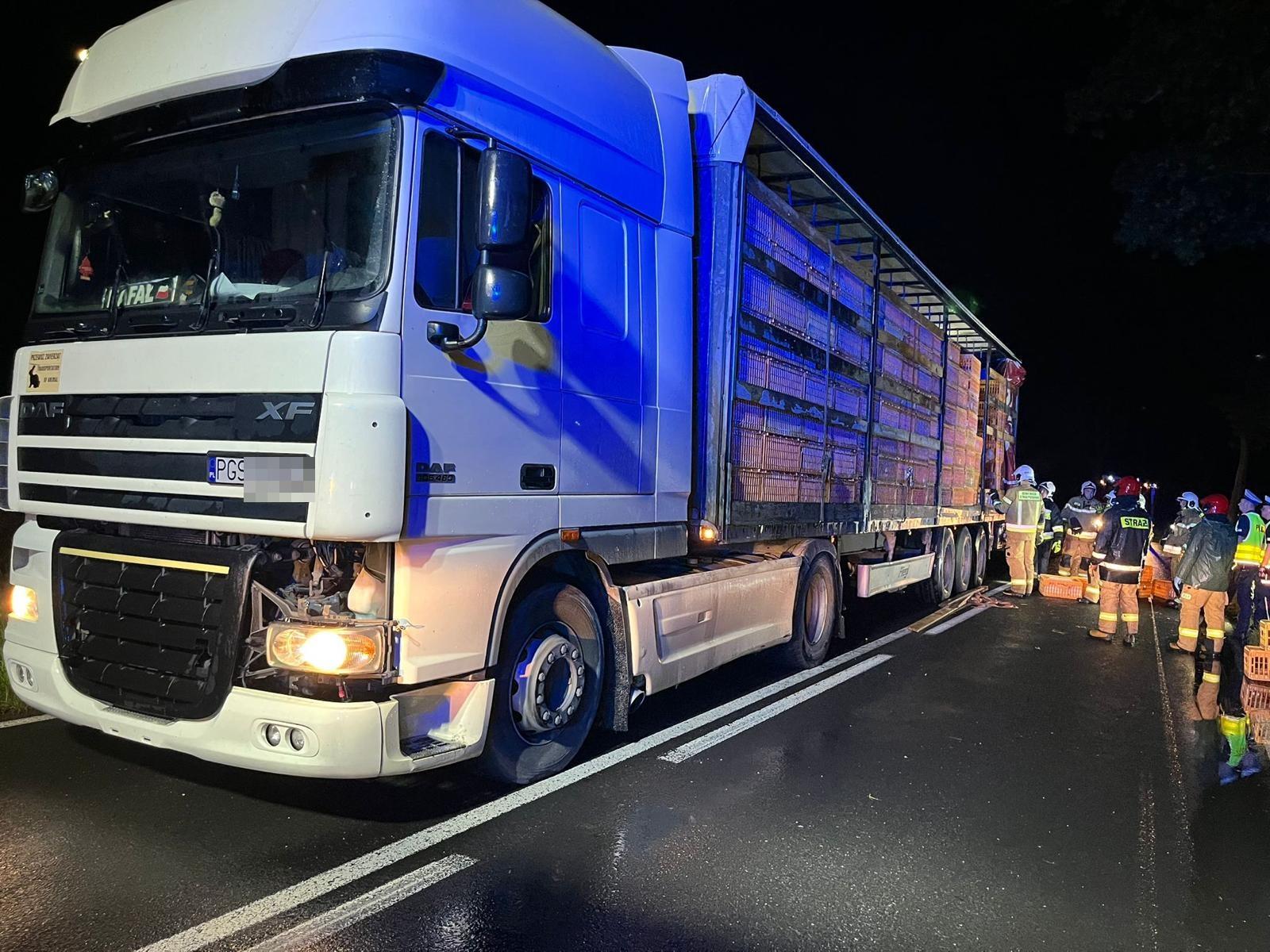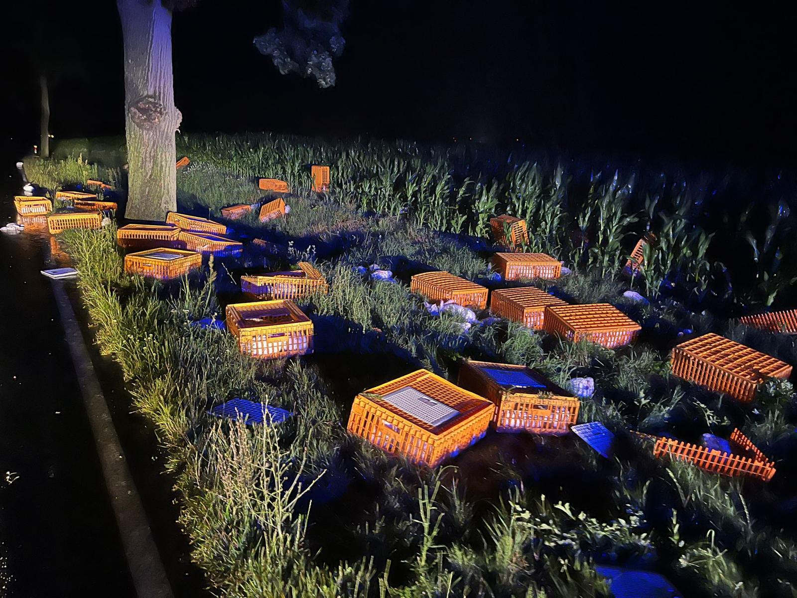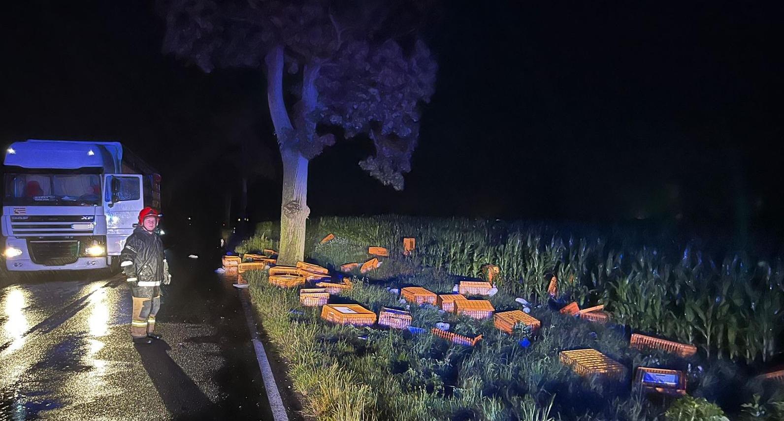 Po dojeździe straży pożarnej w wyznaczone miejsce okazało się, że podczas transportu, na łuku drogi, z naczepy tira wypadło kilkadziesiąt klatek, z żywymi królikami.