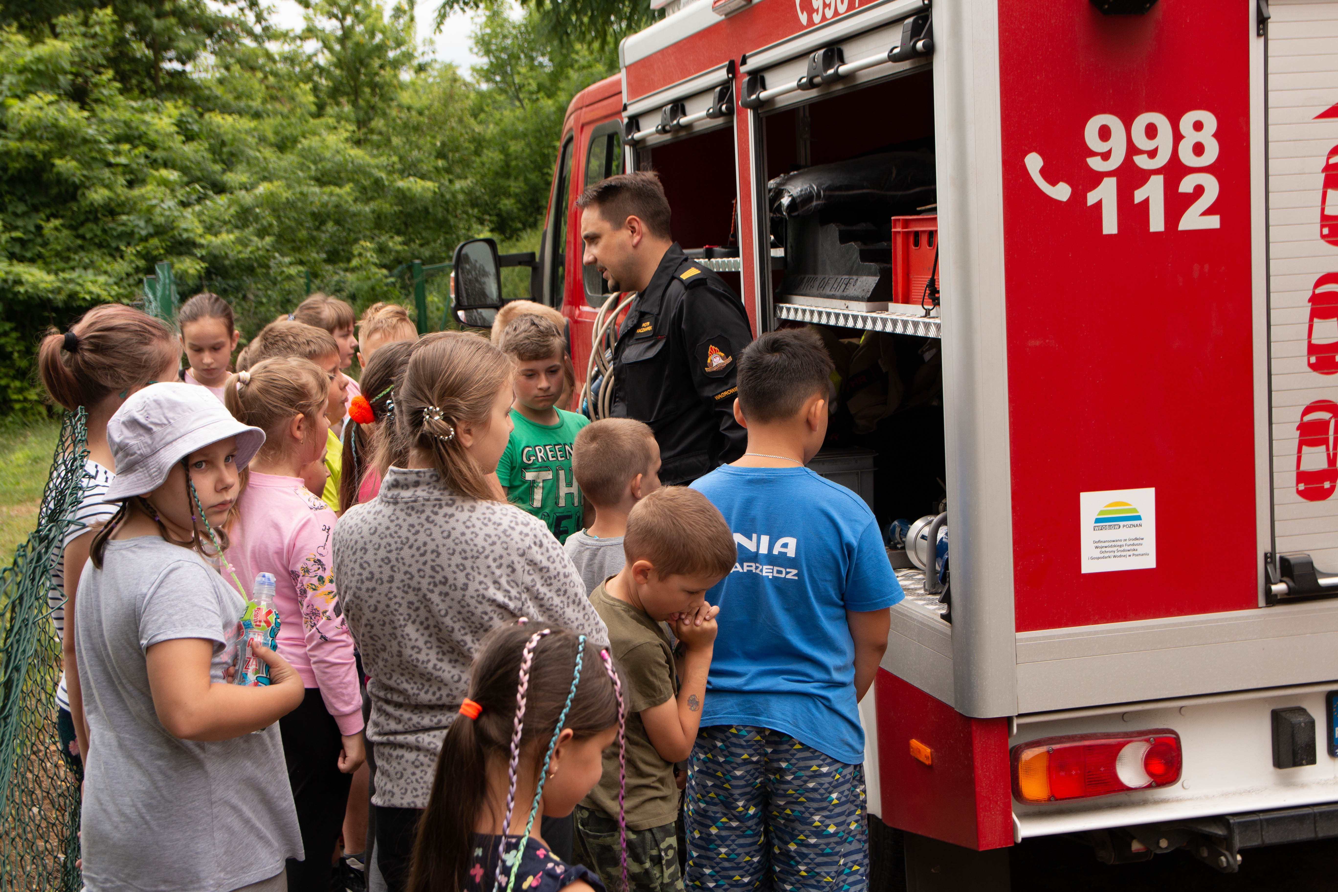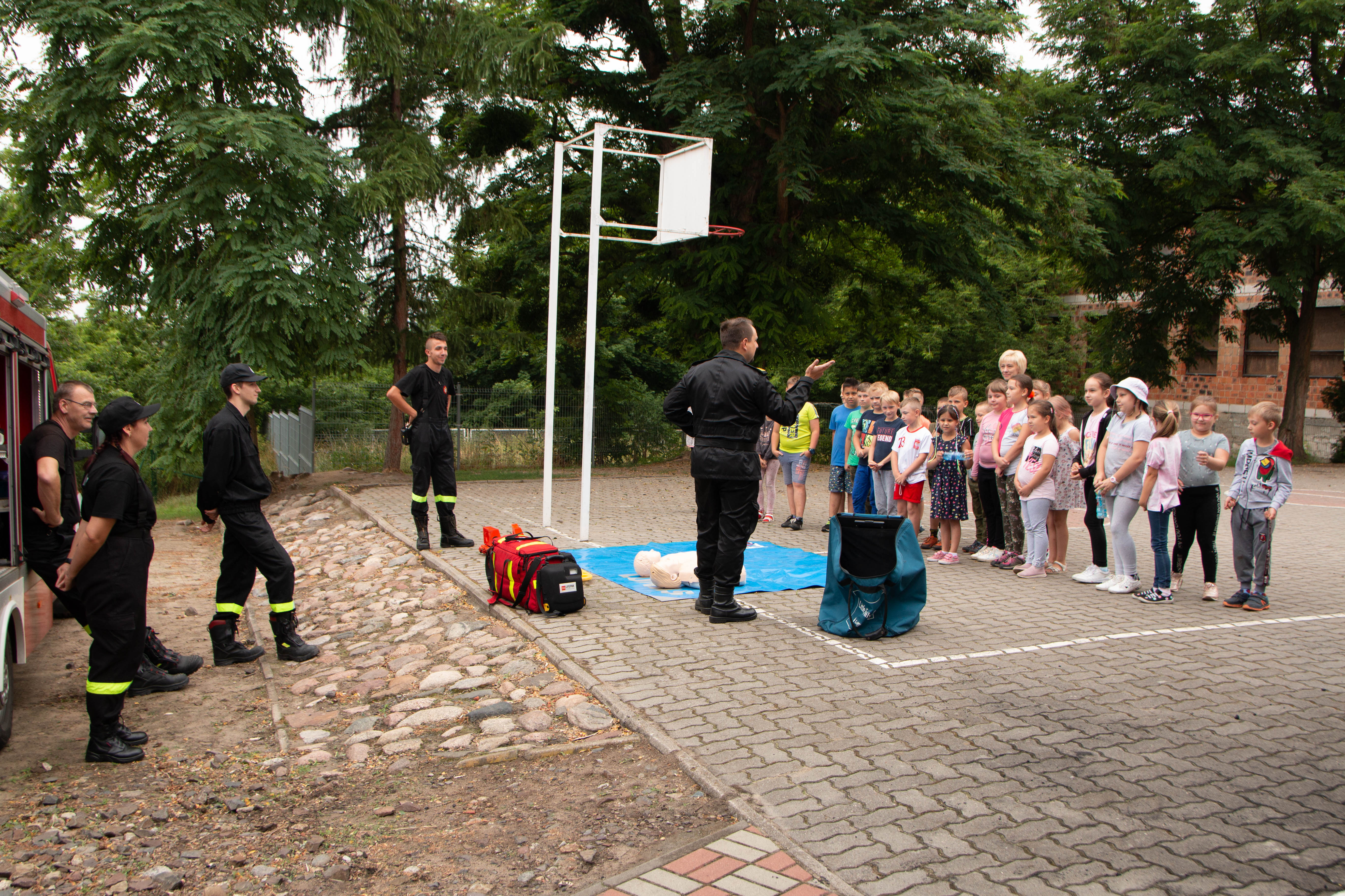 W okresie wakacyjno-letnim funkcjonariusze Państwowej Straży Pożarnej wspólnie z druhami z Ochotniczych Straży Pożarnych prowadzą zajęcia prewencyjno-edukacyjne dla dzieci i młodzieży przybywających na obozach i półkoloniach na terenie powiatu wągrowieckiego.