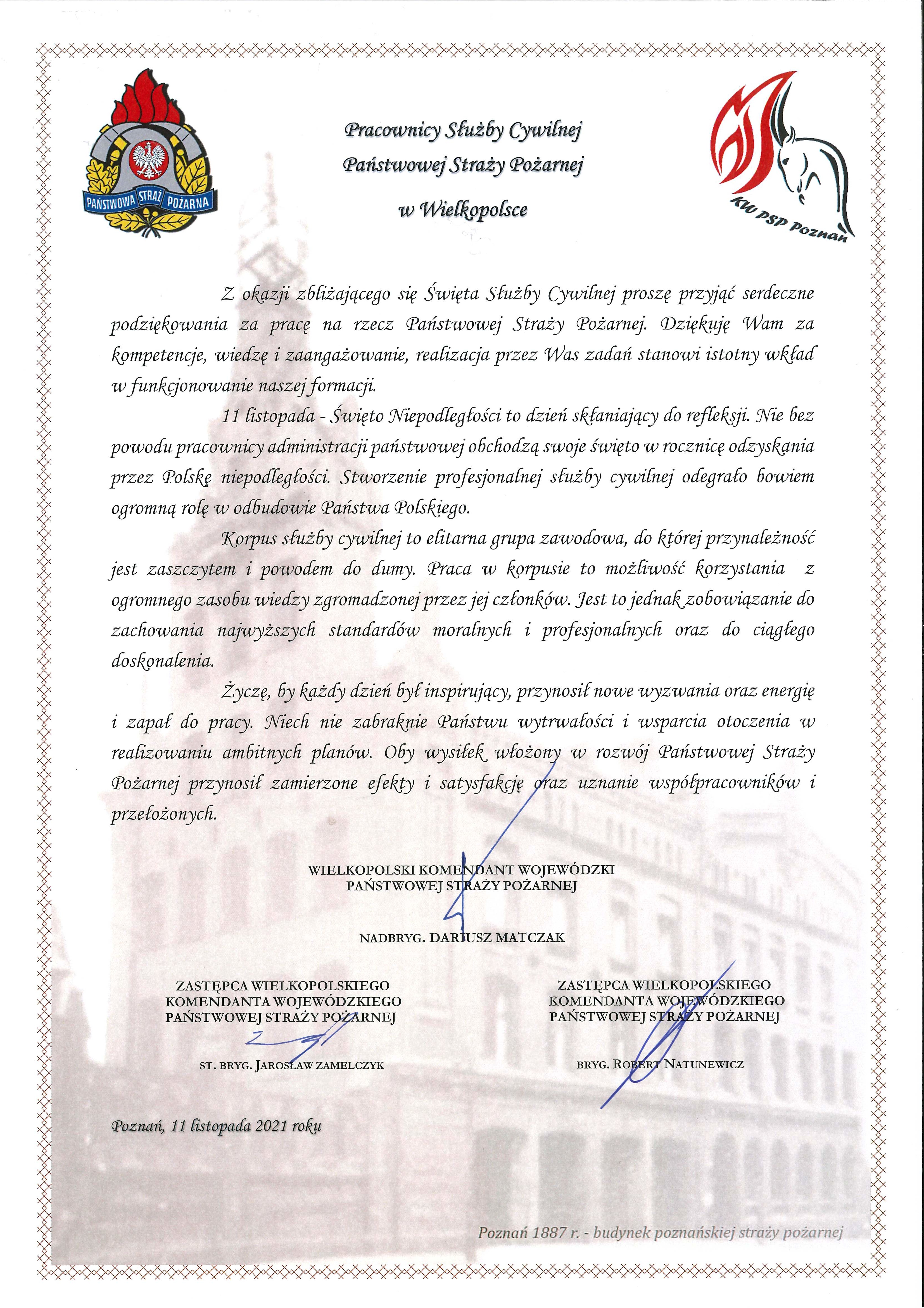 LIST WIELKOPOLSKIEGO KOMENDANTA WOJEWÓDZKIEGO Z OKAZJI ŚWIĘTA SŁUŻBY CYWILNEJ Zdjęcia (1) Pokaż zdjęcie 1 z galerii.