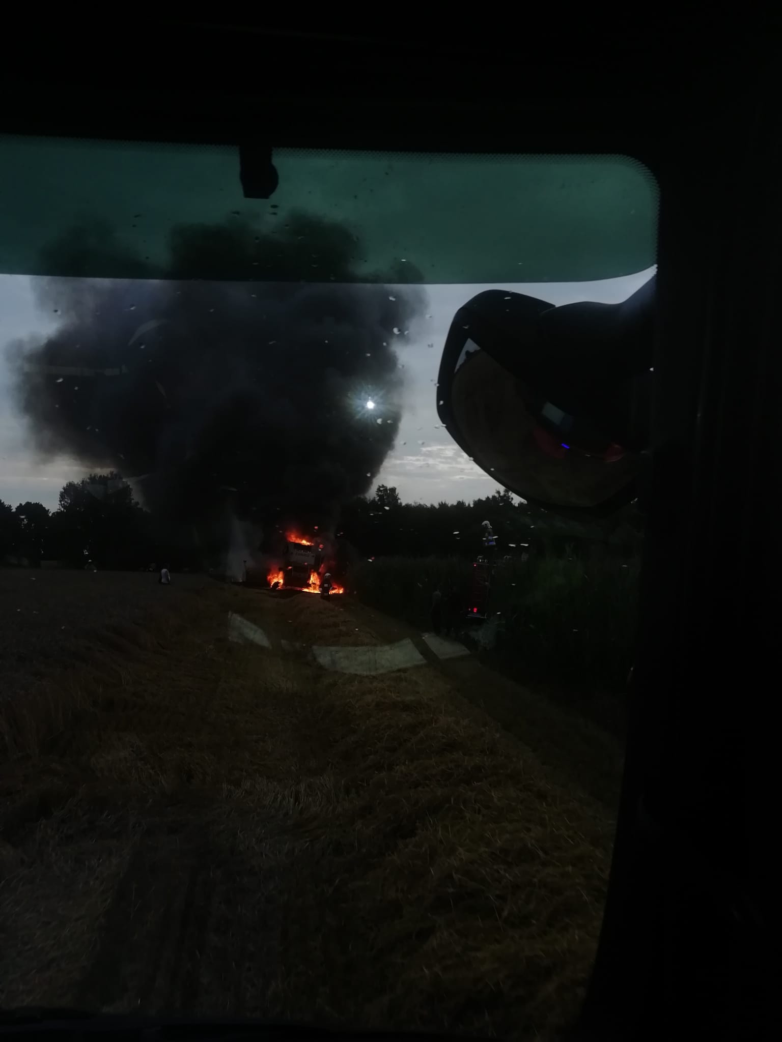 Zgłoszenia o płonących kombajnach dotarły do Stanowiska Kierowania Komendanta Powiatowego PSP w godzinach popołudniowych. Pierwszy pożar miał miejsce w Mokronosach (gmina Damasławek), drugi natomiast w miejscowości Koninek (gmina Wągrowiec). Pożar kombajnu w Mokronosach zakończył się na szczęście na spalonej komorze silnika. W drugim przypadku spaleniu uległ praktycznie cały kombajn.