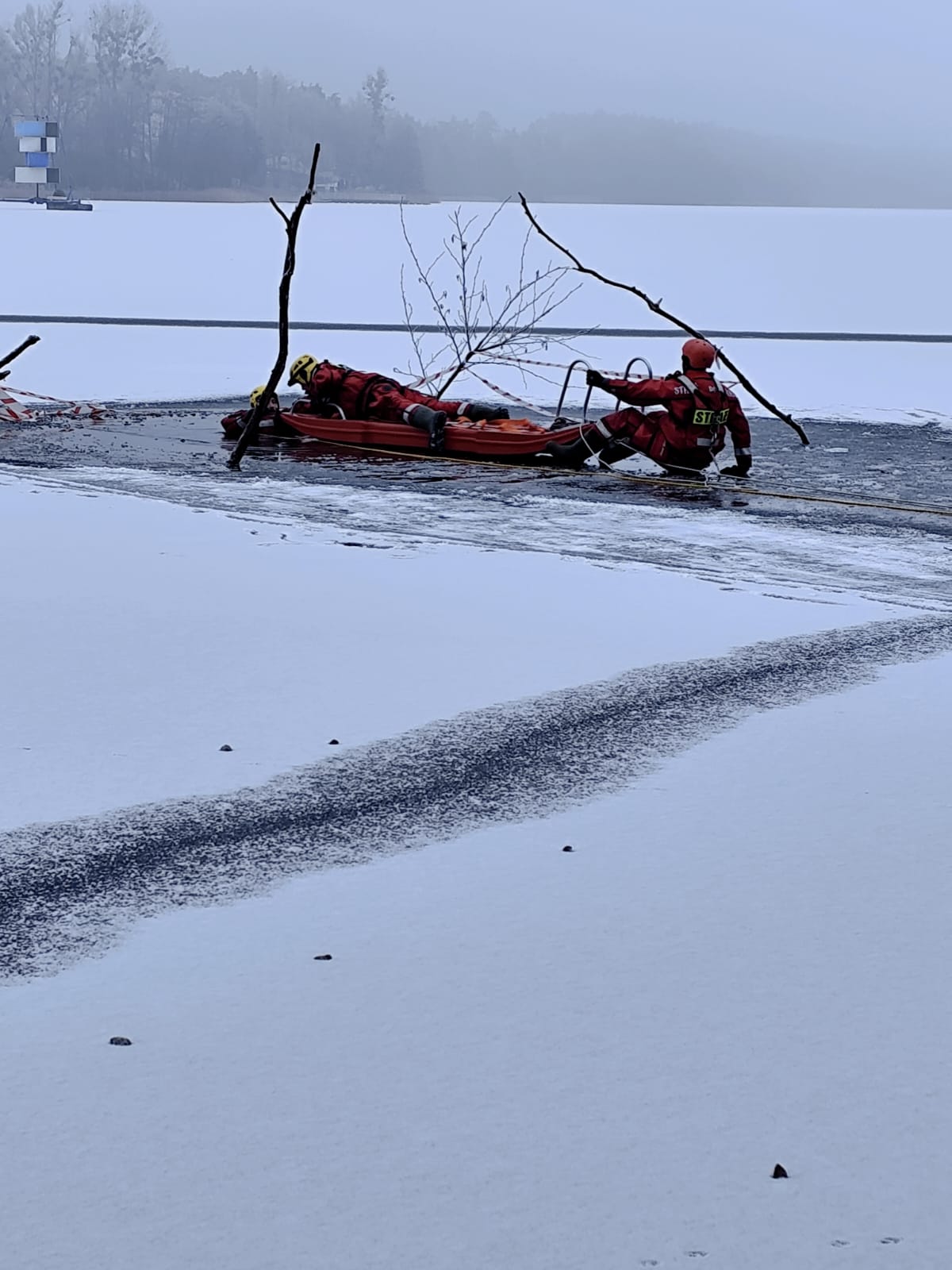 Zimowe miesiące, choć piękne, niosą ze sobą wiele zagrożeń związanych z niskimi temperaturami. Zamarznięte akweny stają się niebezpieczne, lód staje się zagrożeniem dla ludzi, którzy nieodpowiedzialnie próbują na niego wejść, dlatego strażacy muszą być przygotowani do działań z tym związanych.