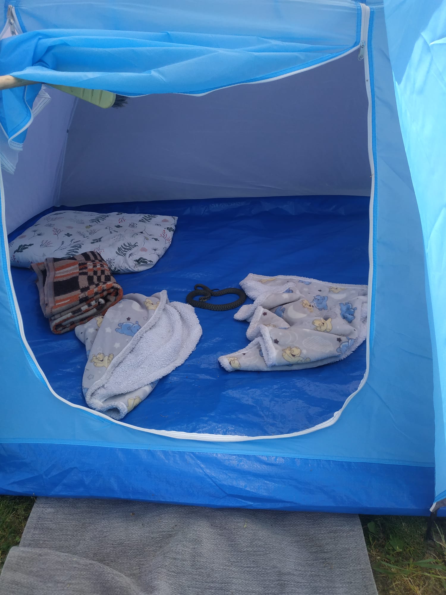 PEŁZAJĄCY WĄŻ W NAMIOCIE TURYSTYCZNYM