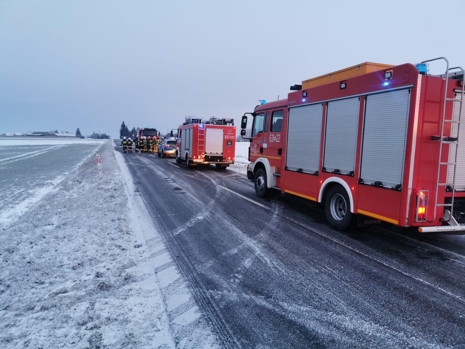 W momencie dotarcia pierwszych zastępów straży pożarnej na miejsce zdarzenia potwierdziły się informacje ze zgłoszenia, że pługopiaskarka potrąciła kobietę. Przed przyjazdem straży pożarnej Zespół Ratownictwa Medycznego prowadził czynności medyczne, a strażacy zabezpieczyli miejsce prowadzonych działań ratowniczych.