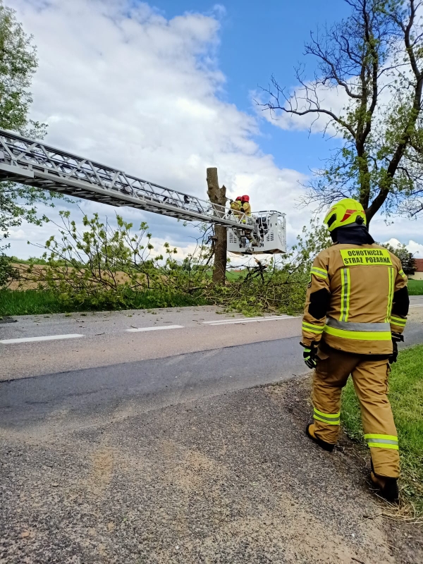 W wyniku zdarzenia złamaniu uległo drzewo, które decyzją Kierującego Działaniami Ratowniczymi zostało usunięte, do czego wykorzystano drabinę mechaniczną SCD 30.