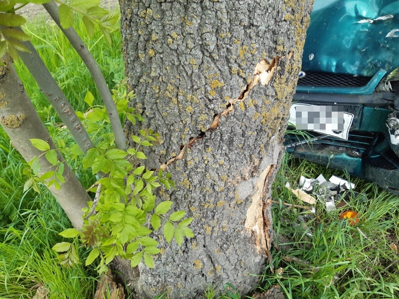 PO KOLIZJI KONIECZNE BYŁO USUNIĘCIE DRZEWA