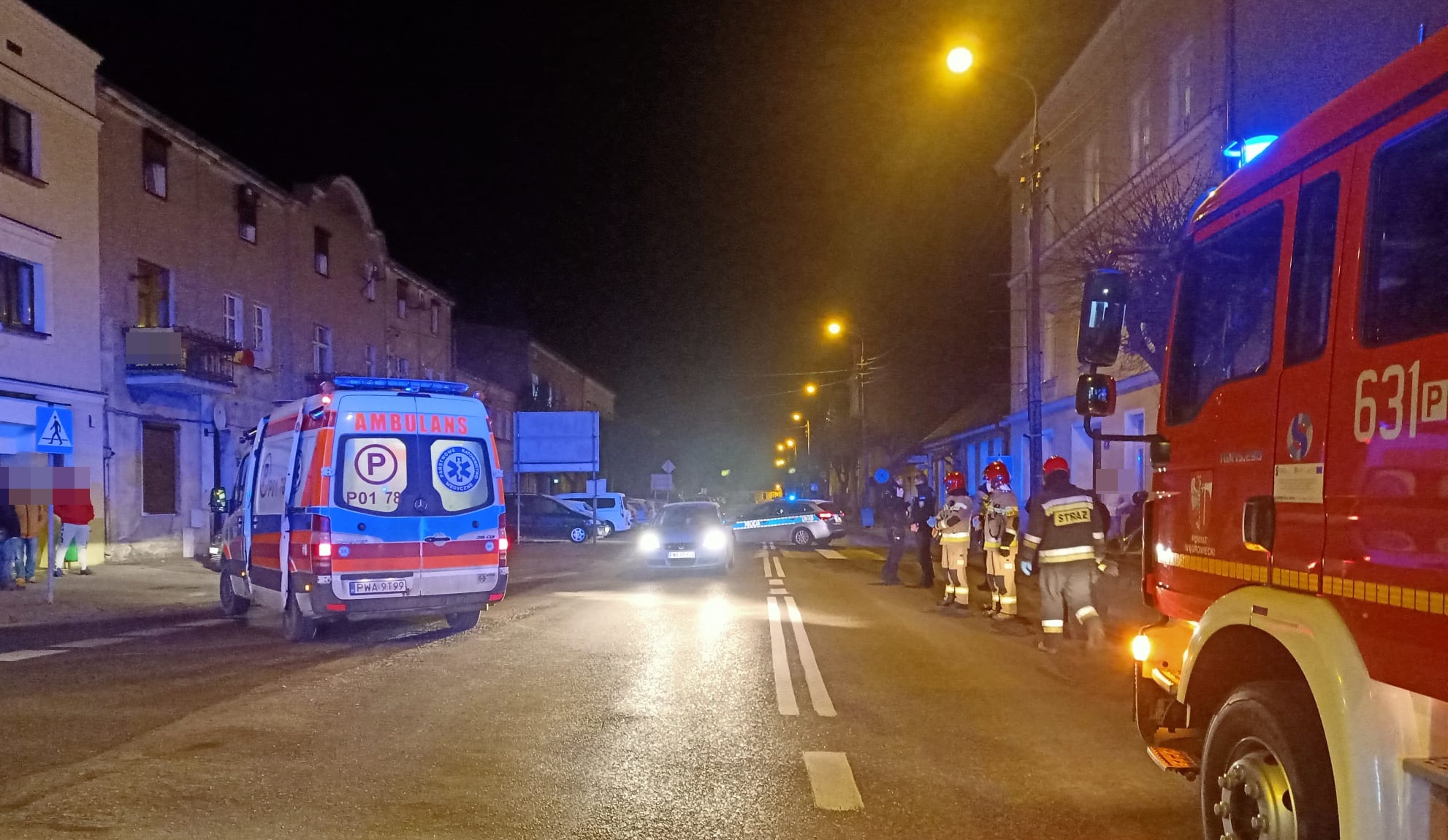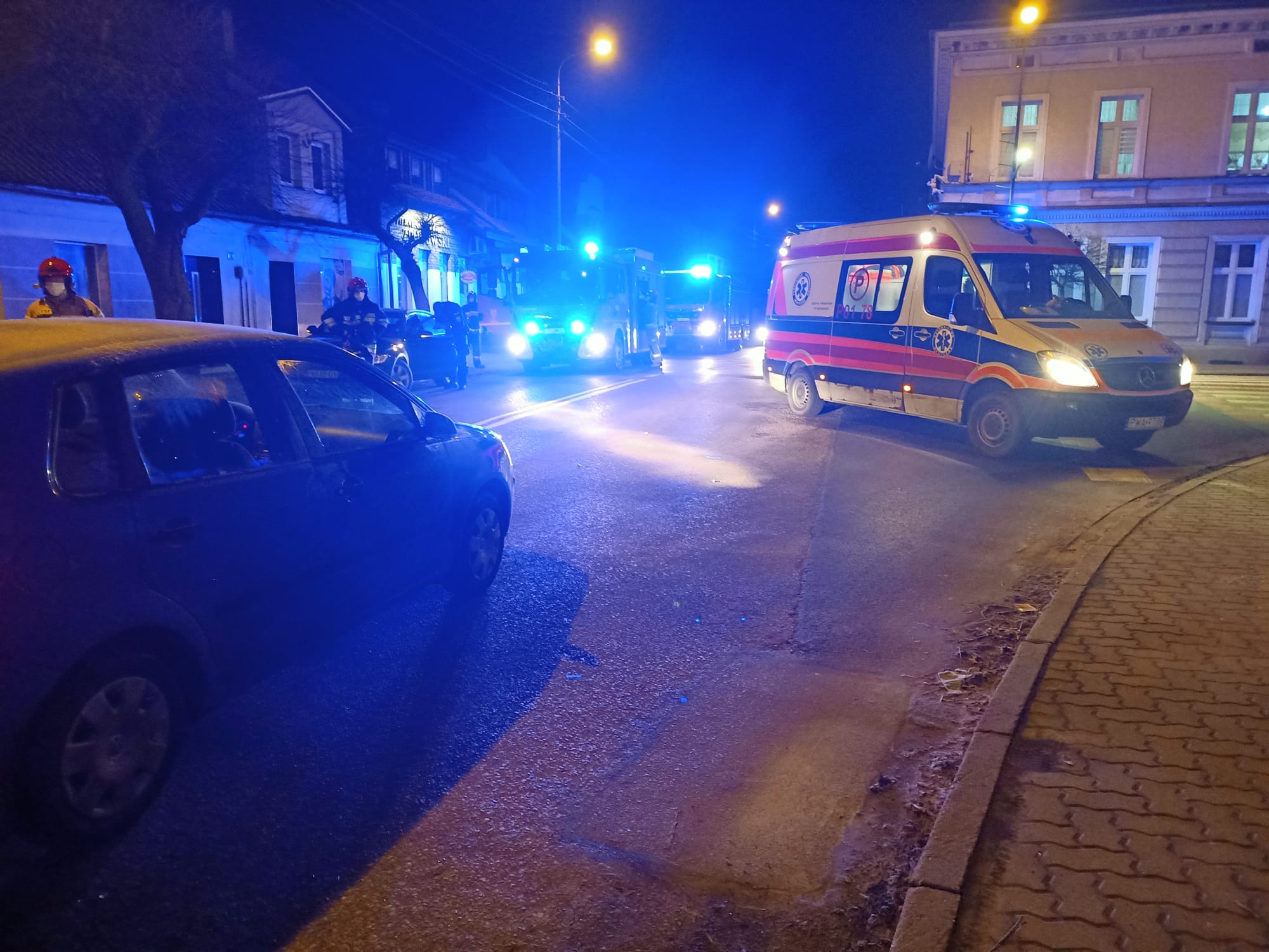 Po dojeździe straży pożarnej na miejsce zdarzenia zastano przytomną kobietę leżącą na jezdnia, z widocznymi potłuczeniami m.in. głowy.