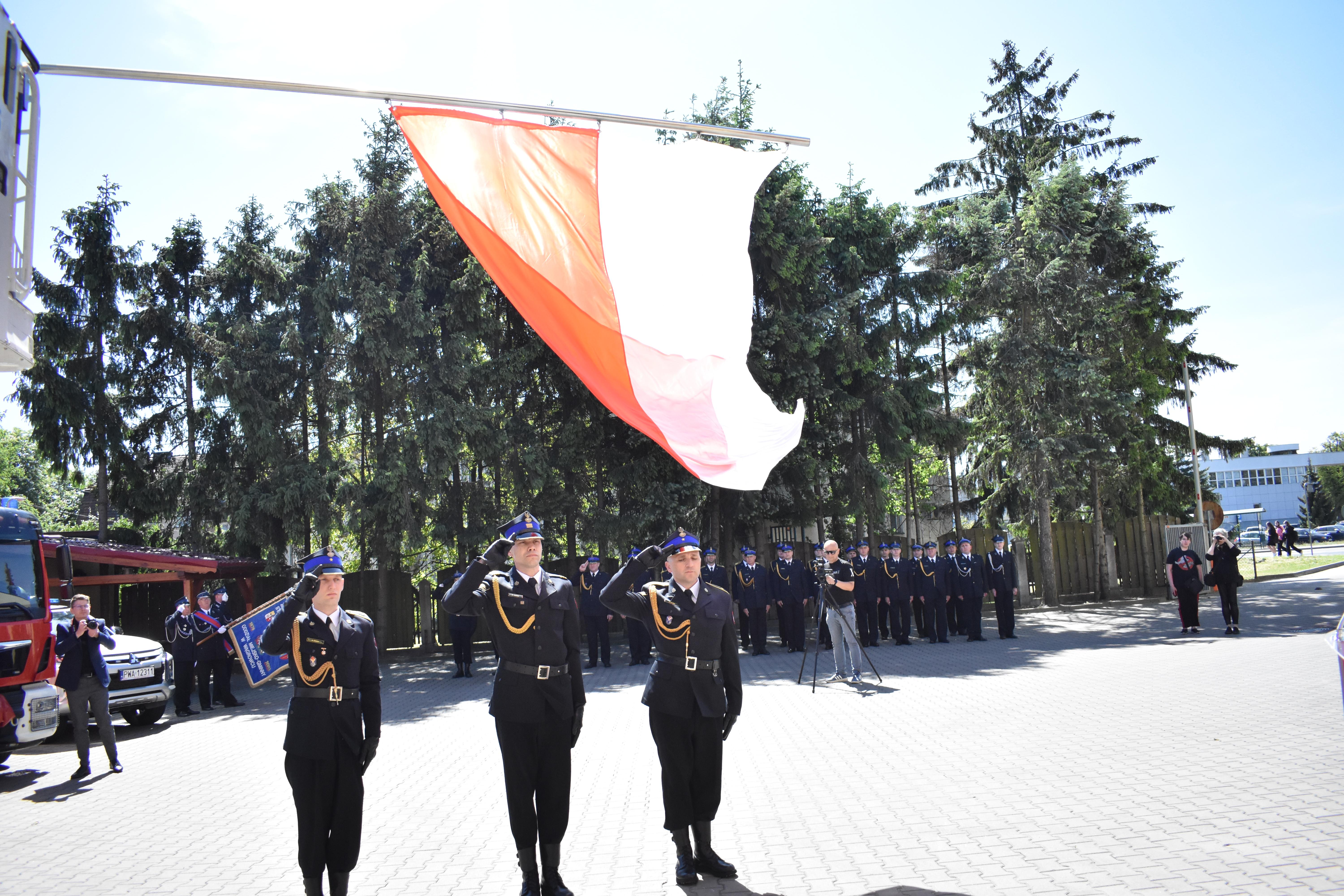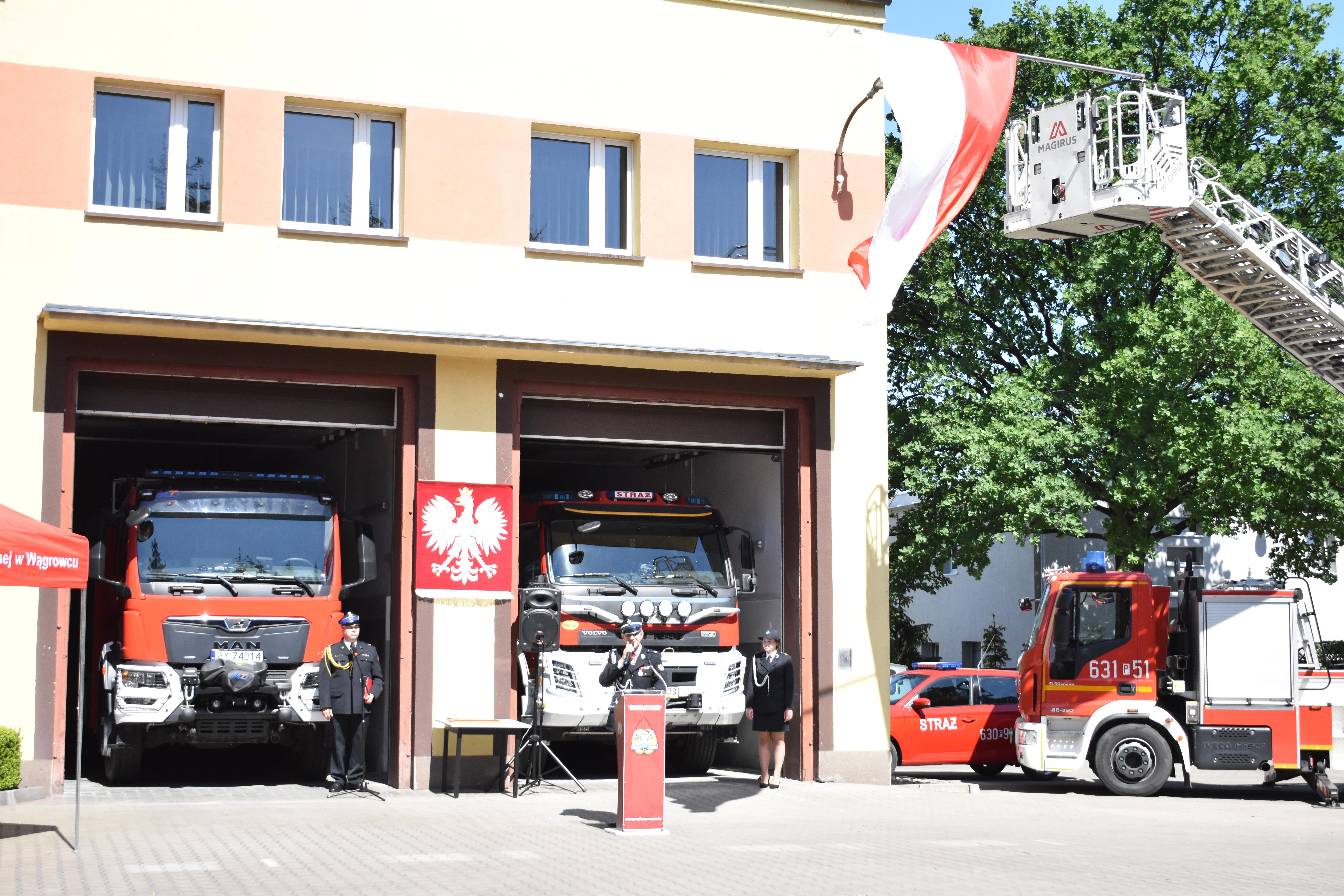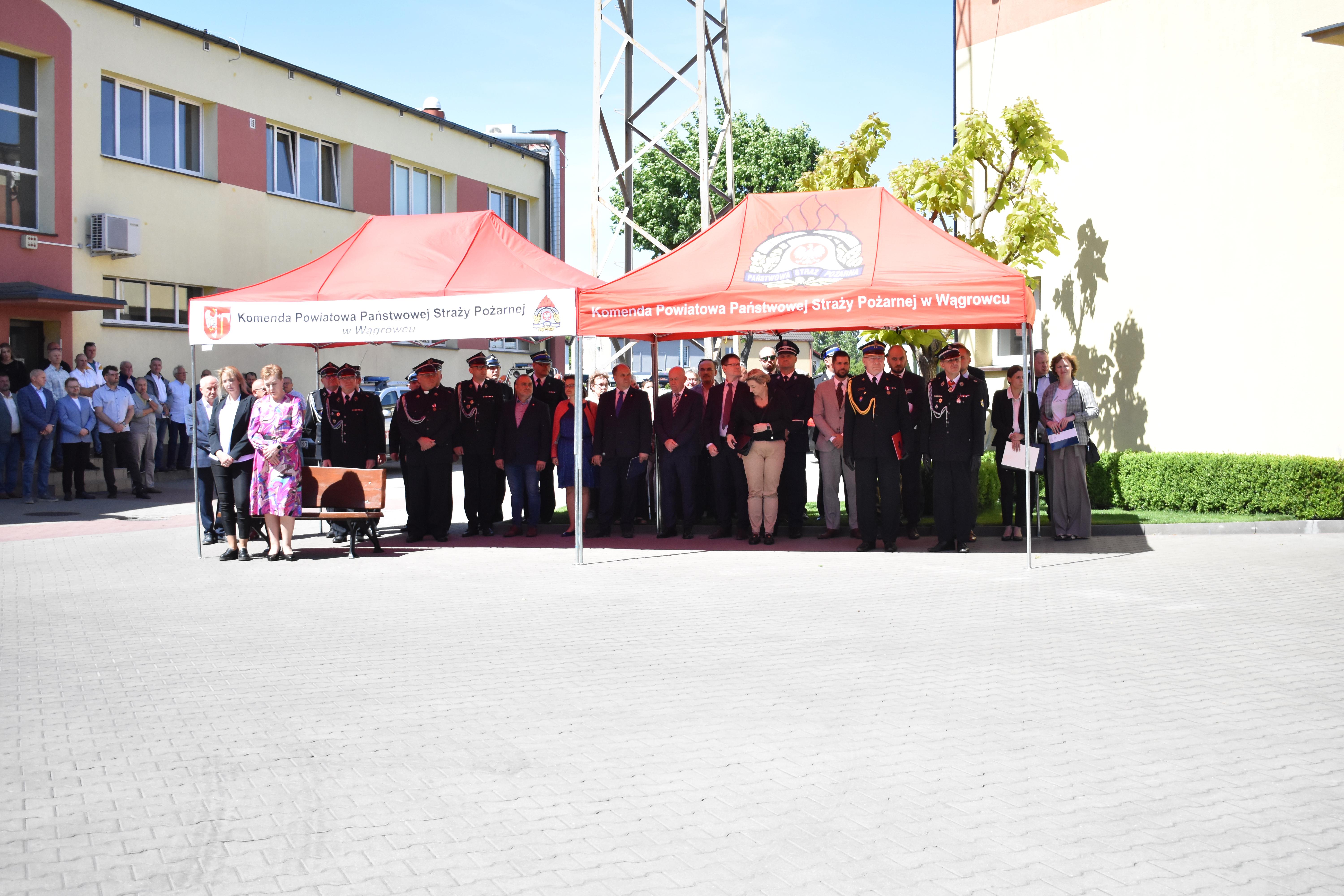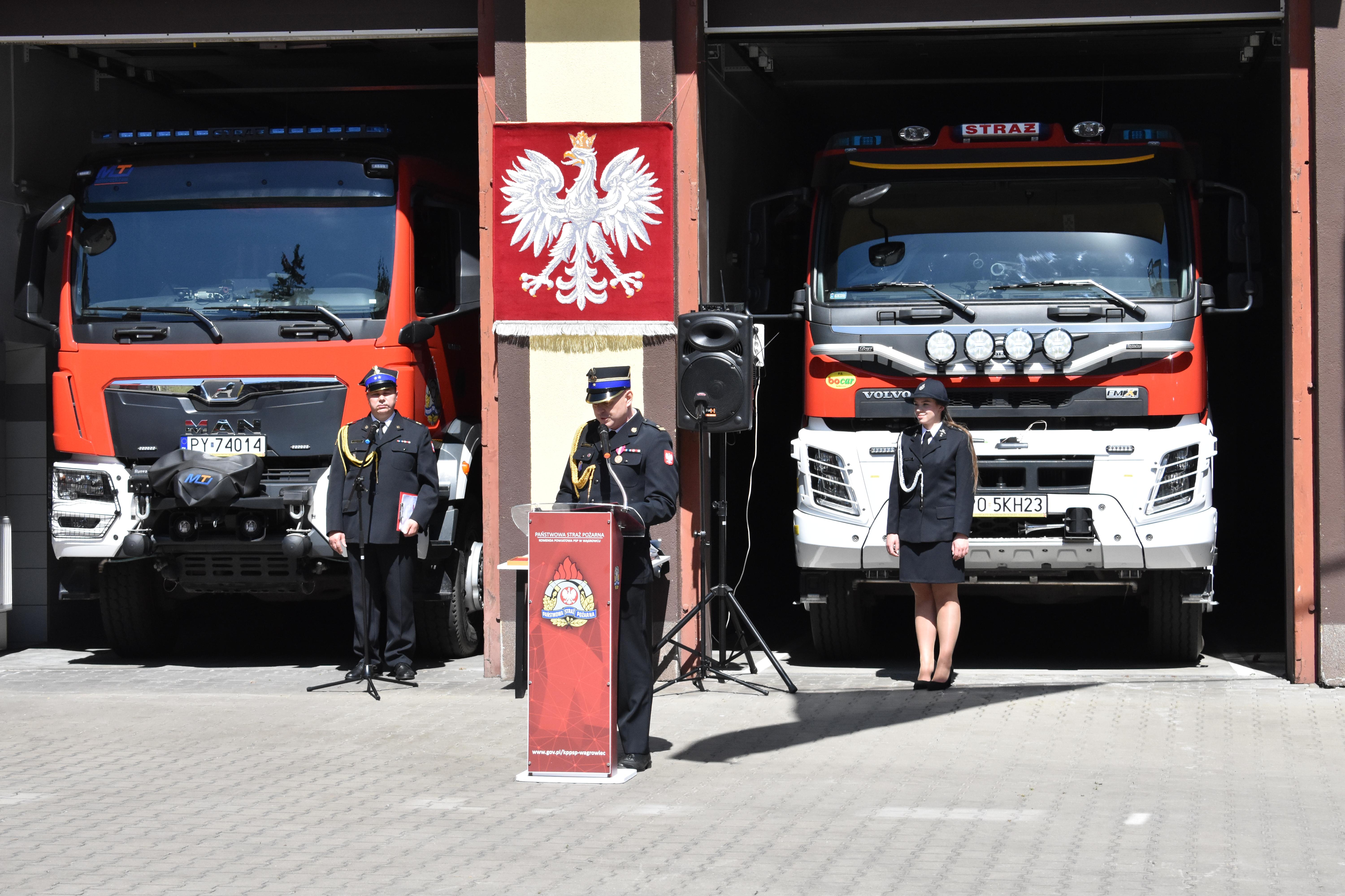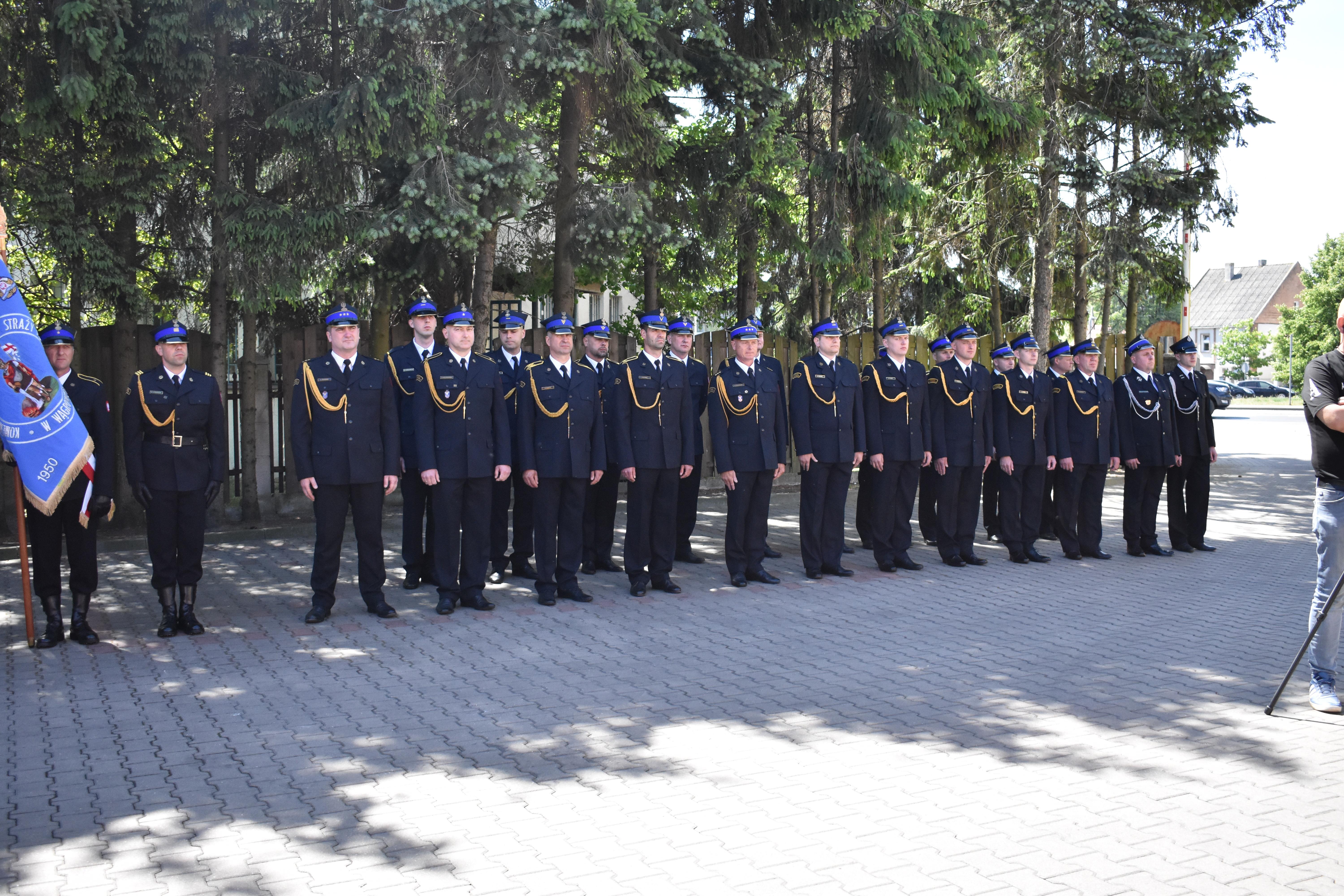 Uroczysty apel rozpoczął się od złożenia meldunku Komendantowi Powiatowemu PSP w Wągrowcu mł. bryg. Jackowi Rochowiakowi przez dowódcę Jednostki Ratowniczo-Gaśniczej kpt. Waldemara Szymkowiaka.