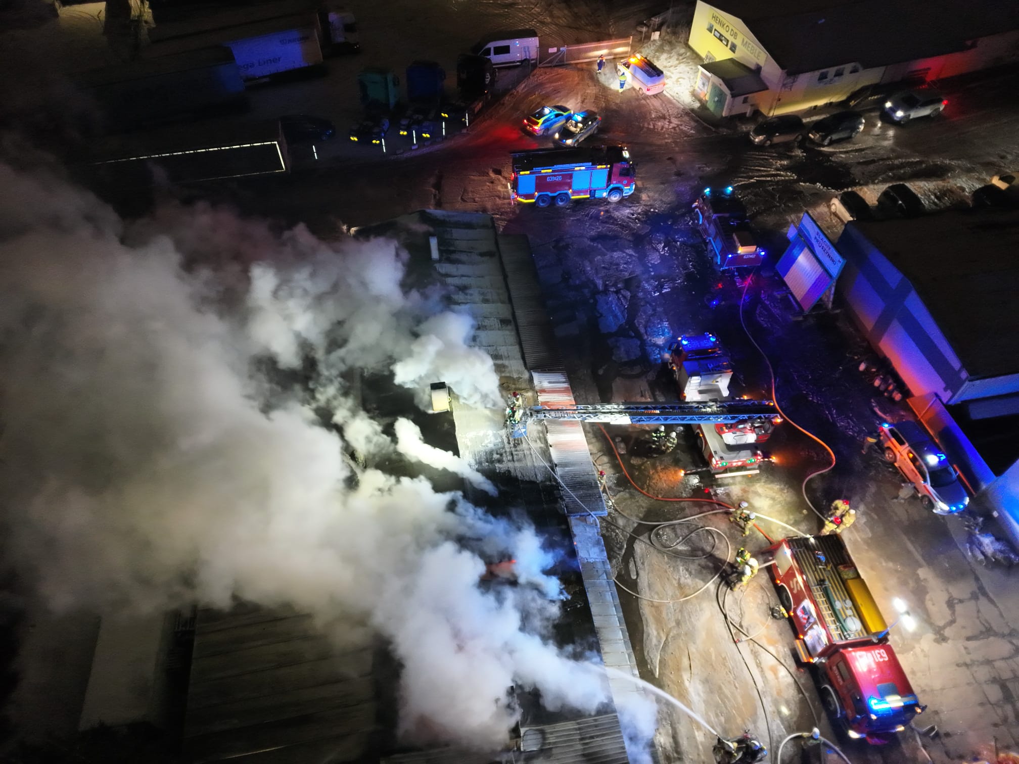 Po przybyciu pierwszych zastępów jednostek ochrony przeciwpożarowej (JOP) na miejsce zdarzenia ustalono, że pożar obejmuje pomieszczenia budynku magazynowego.