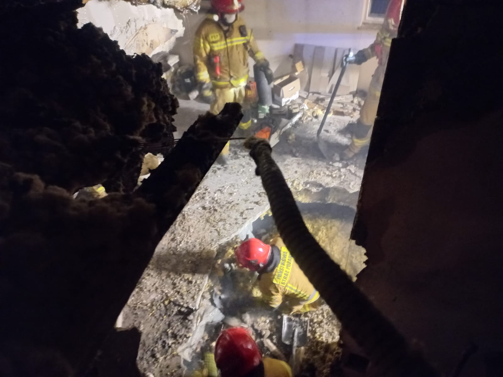 Po dojeździe na miejsce zdarzenia pierwszych zastępów straży pożarnej okazało się, że pali się podłoga domu szkieletowego. Na miejscu właściciel potwierdził, że w momencie powstania pożaru nikogo nie było wewnątrz budynku