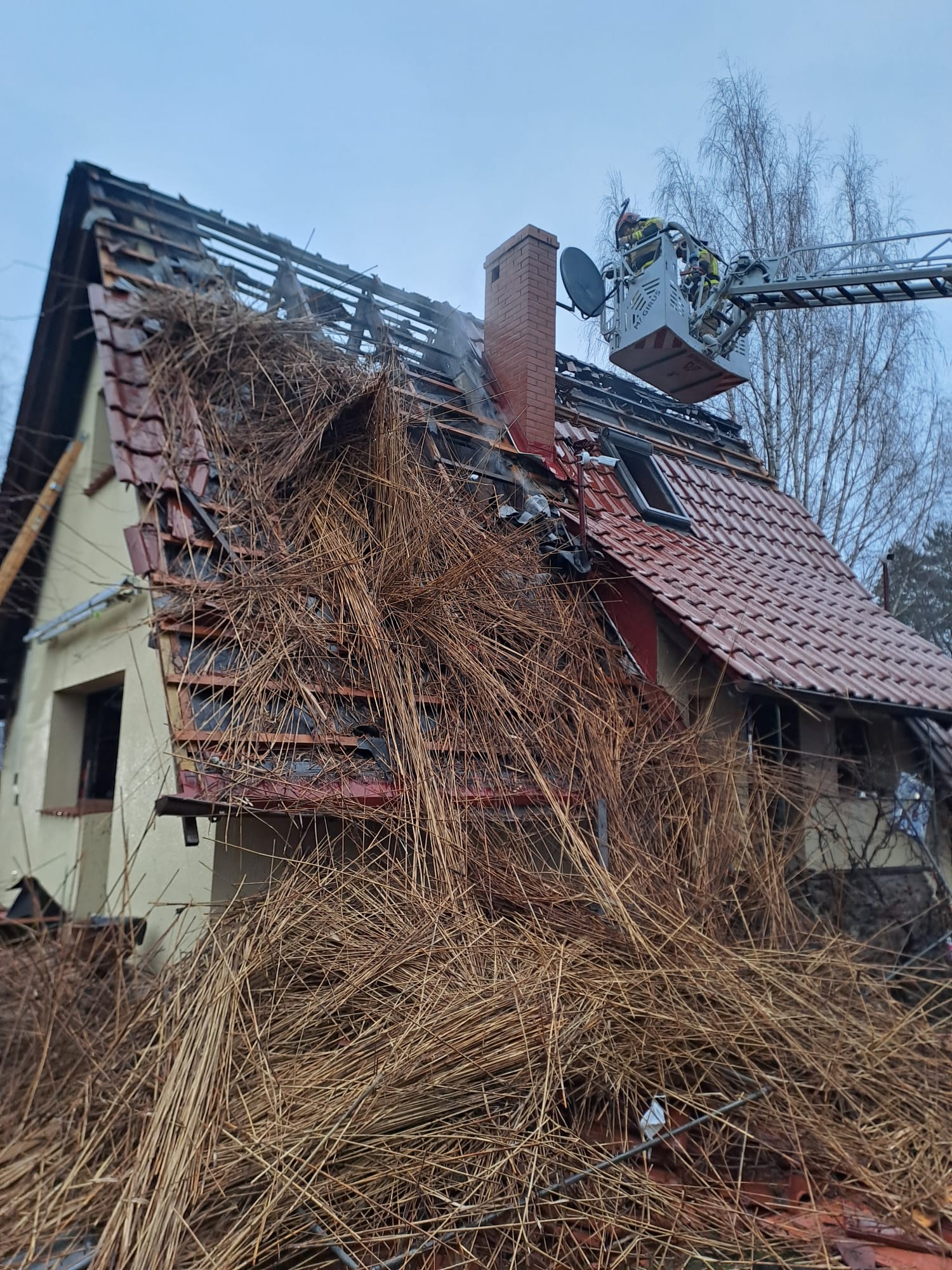 W czasie działań gaśniczych jak i po ich zakończeniu strażacy sukcesywnie wykonywali prace rozbiórkowe części dachu w celu wyciągnięcia trzciny, która służyła jako ocieplenie.