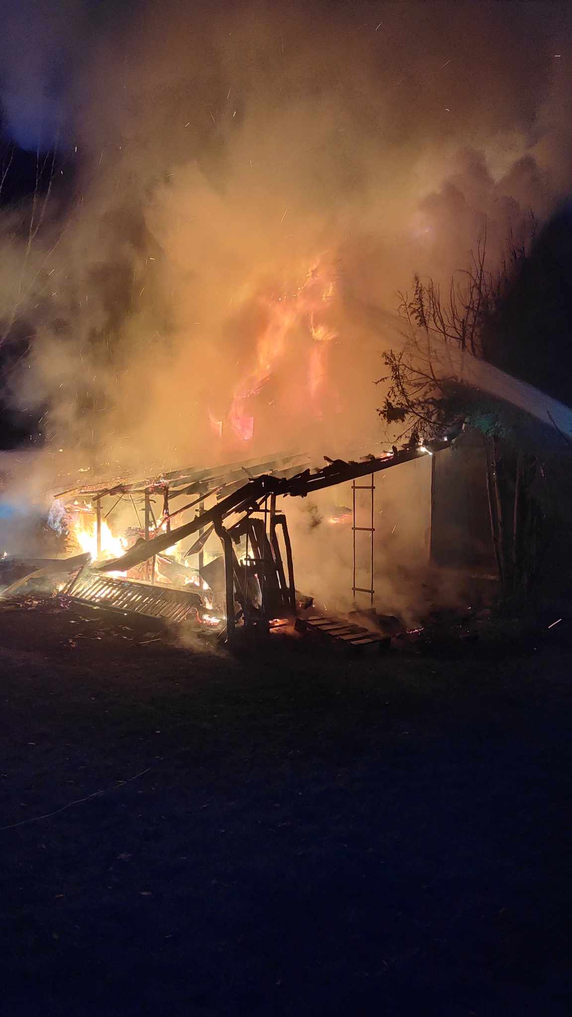 Po przyjeździe straży pożarnej na miejsce zdarzenia potwierdziły się informacje, ze zgłoszenia, gdzie pożarem objęta była wiata bezpośrednio przylegająca do budynku oraz częściowo budynek.