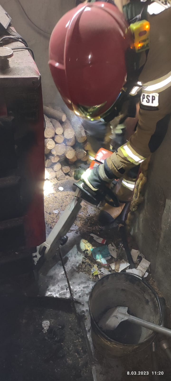 Działania straży pożarnej polegały na zabezpieczeniu miejsca zdarzenia, wygaszeniu pieca centralnego ogrzewania oraz oddymieniu mieszkania. W celu dokładnej lokalizacji zagrożenia strażacy wykonali prace rozbiórkowe z wykorzystaniem piły spalinowej do cięcia drewna. Strażacy zlokalizowali zarzewia ognia w stropie budynku.