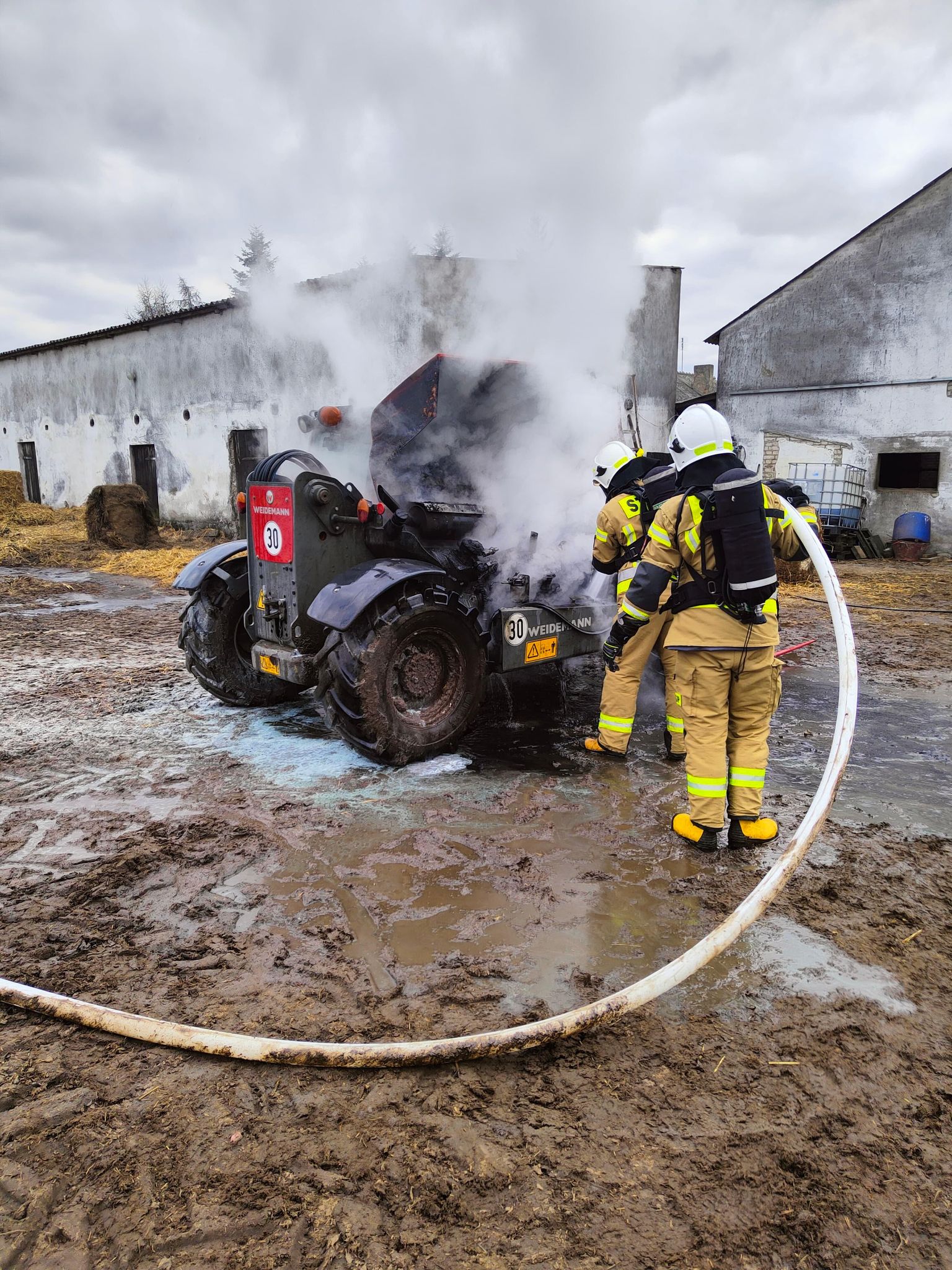 6 marca br. ok. godziny 14:30 straż pożarna otrzymała zgłoszenie o pożarze ładowarki teleskopowej w miejscowości Kakulin, gmina Skoki.