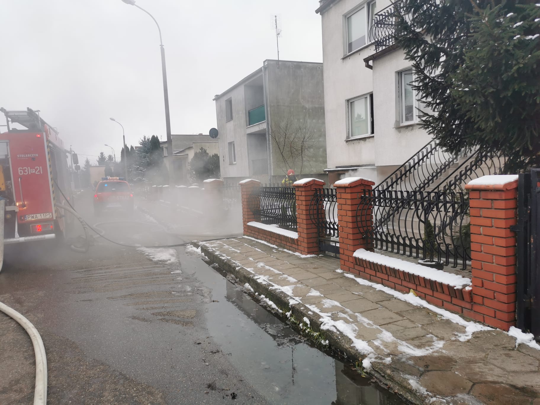 Działania straży pożarnej polegały na zabezpieczeniu miejsca zdarzenia oraz podaniu dwóch prądów wody w natarciu do wnętrza palącej się piwnicy. Równocześnie strażacy odłączyli energię elektryczną oraz zamknęli główny zawór gazu. W trakcie prowadzonych działań gaśniczych panowało bardzo duże zadymienie oraz emisja szkodliwych gazów pożarowych powstałych w wyniku spalania nagromadzonego materiału palnego.