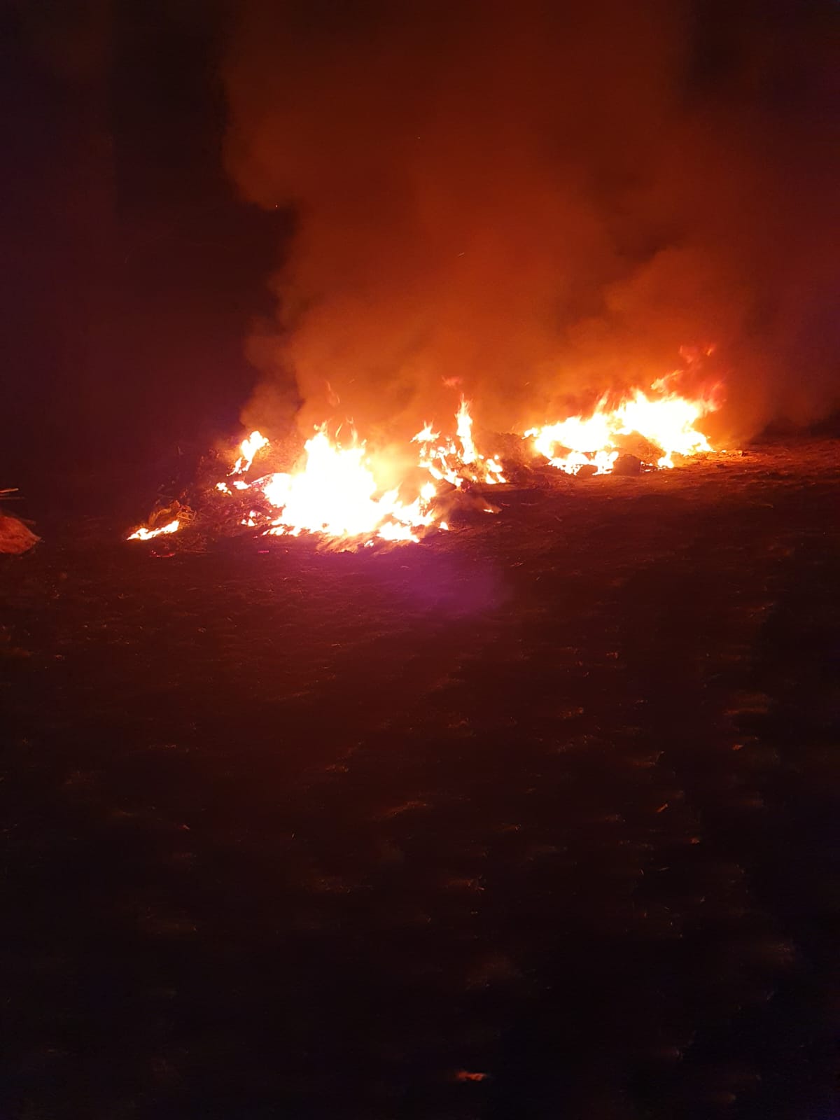 Strażacy, którzy przybyli na miejsce zdarzenia zastali pożar pozostałości części samochodowych na boisku sportowym.