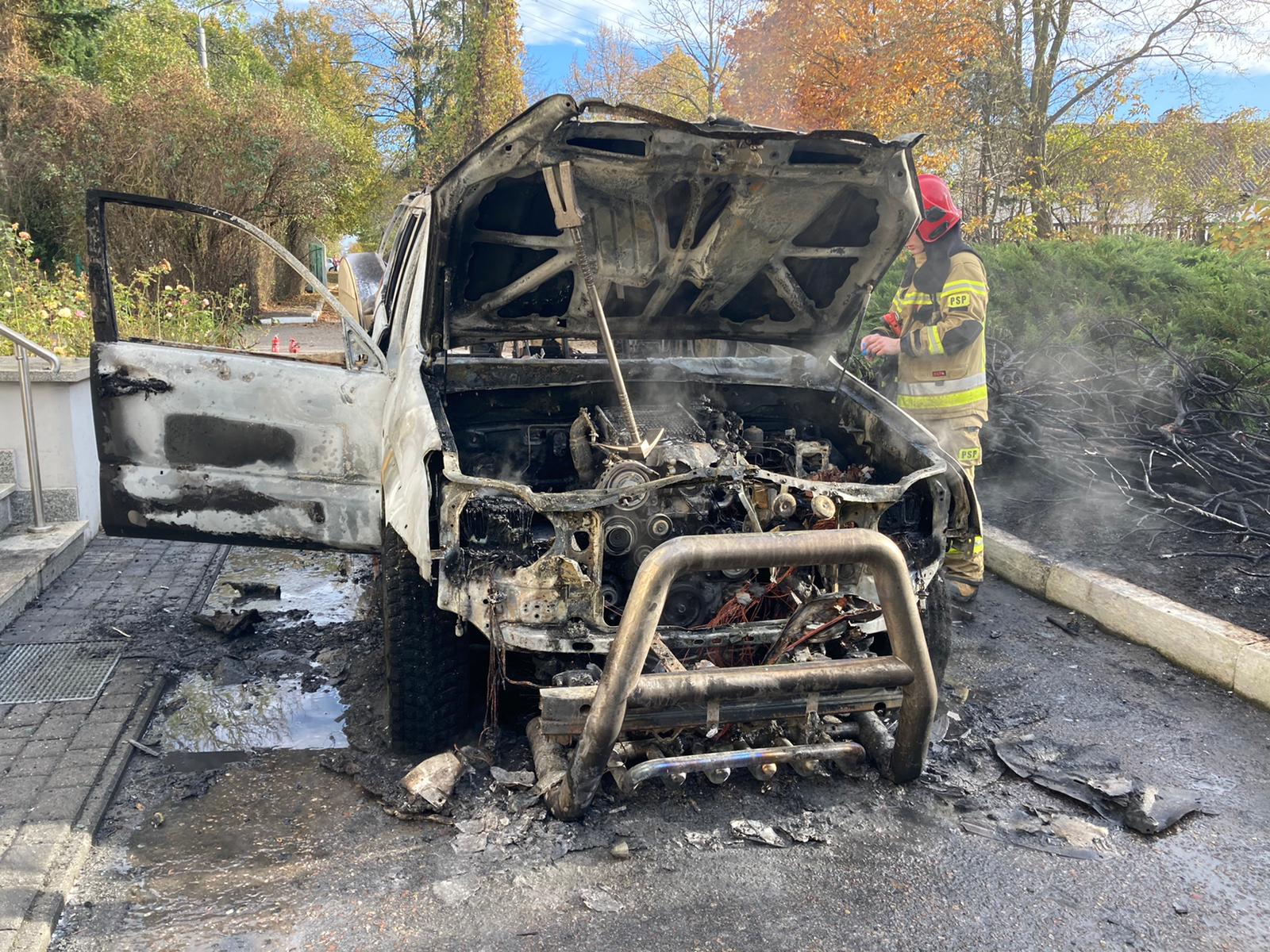 Po skończonych działaniach gaśniczych pojazd został przemieszczony w bezpieczne miejsce.
