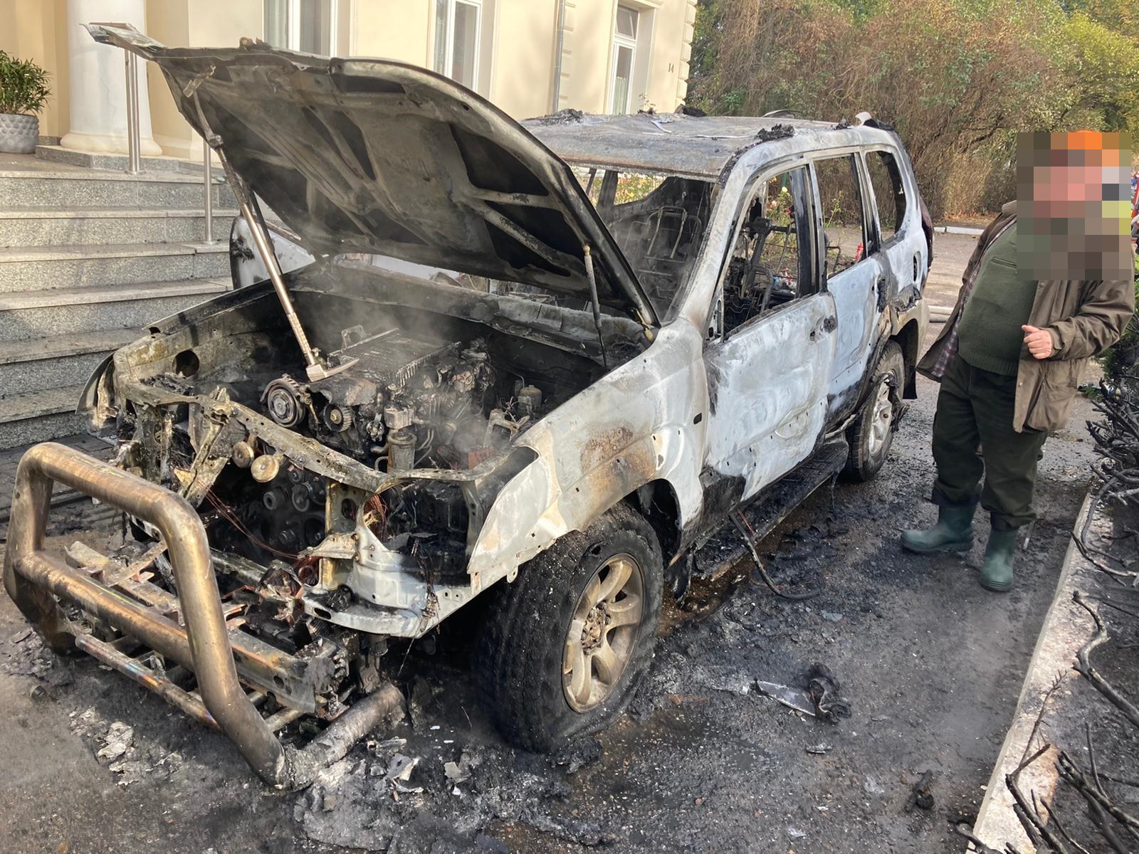 Po przybyciu zastępów straży pożarnej na miejsce zdarzenia pożarem objęte było całe auto, działania strażaków polegały na zabezpieczeniu miejsca zdarzenia oraz podaniu jednego prądu wody na palący się pojazd.