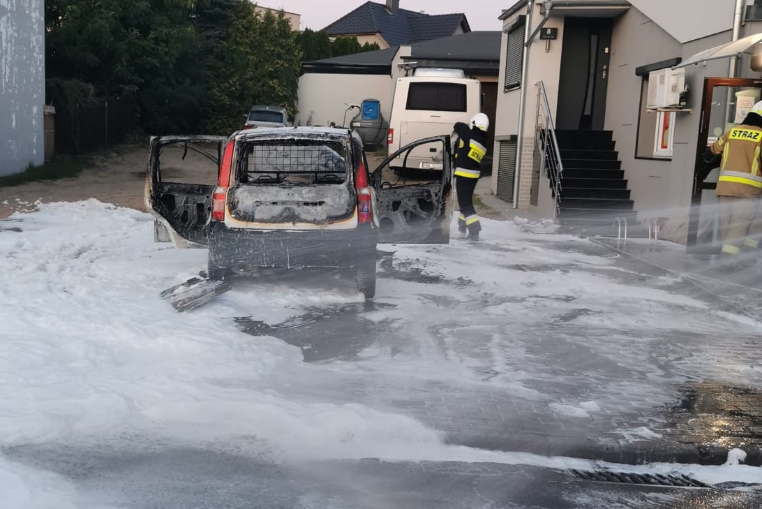 Po przyjeździe straży pożarnej okazało się, że pojazd osobowy cały jest w ogniu.