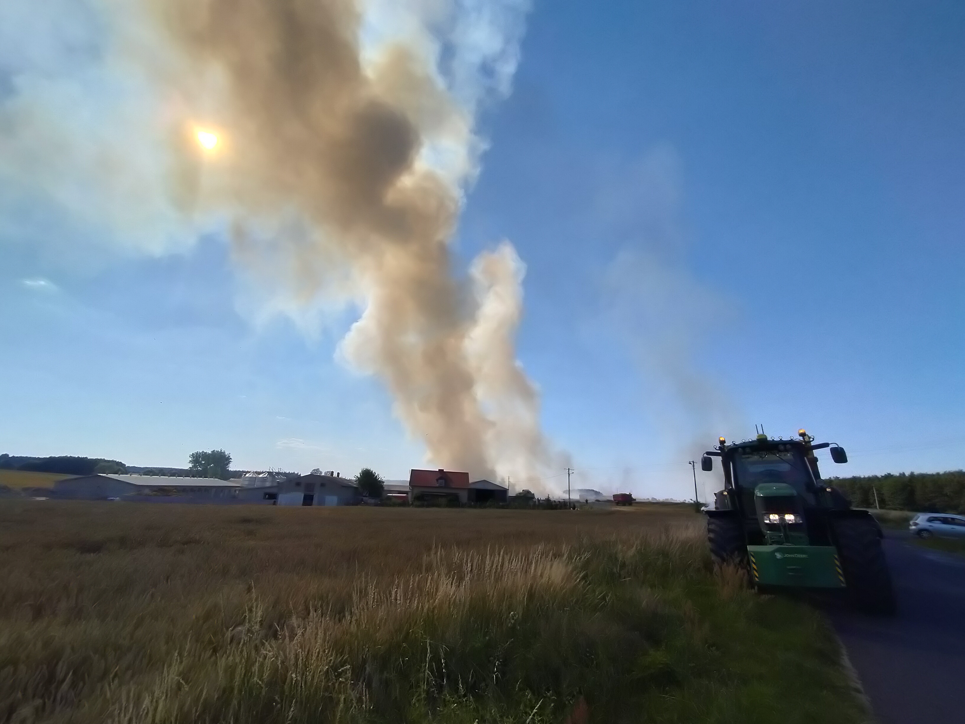 Co ważne pożar udało się ograniczyć dzięki rolniczej solidarności i użyciu rolniczego sprzętu.