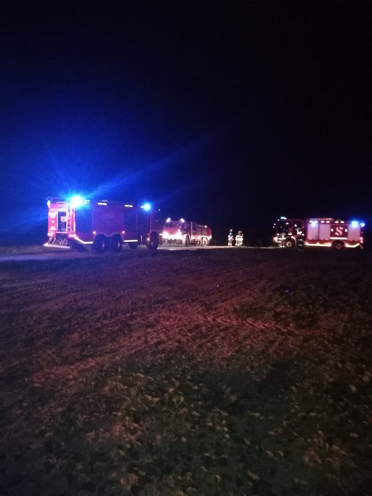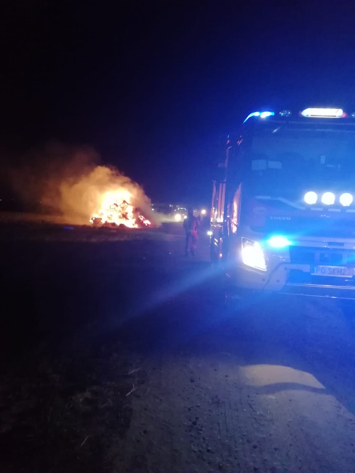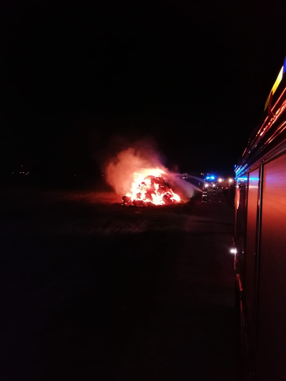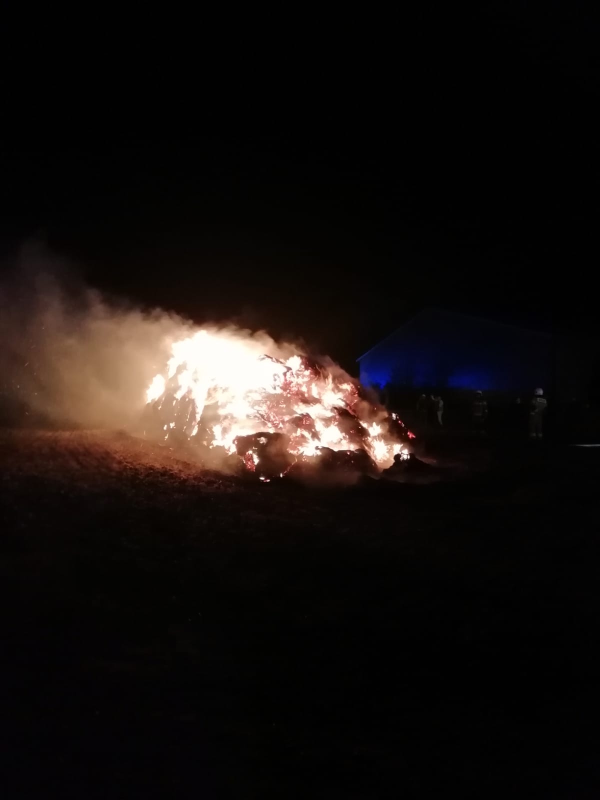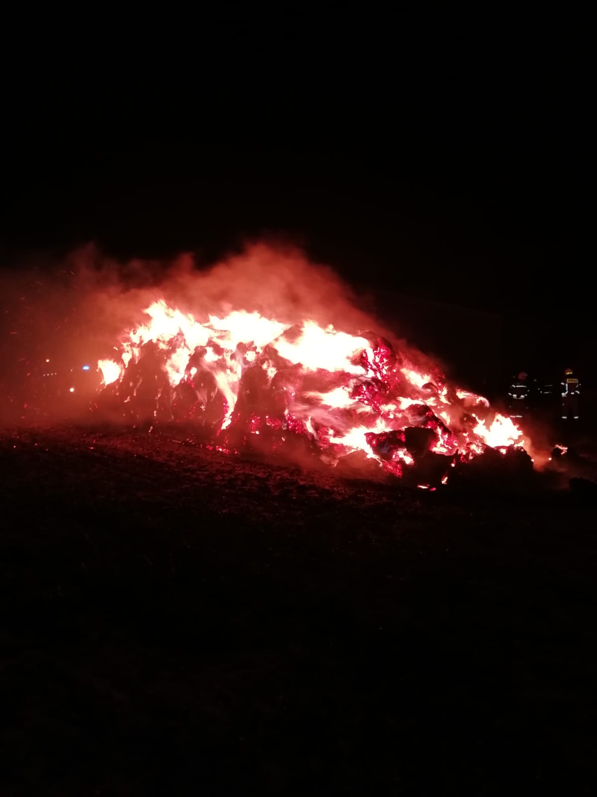 Po przyjeździe jednostek ochrony przeciwpożarowej na miejsce zdarzenia okazało się, że pali się stóg około 150 balotów siana w odległości 25 metrów od stogu znajduje się magazyn ze zbożem.