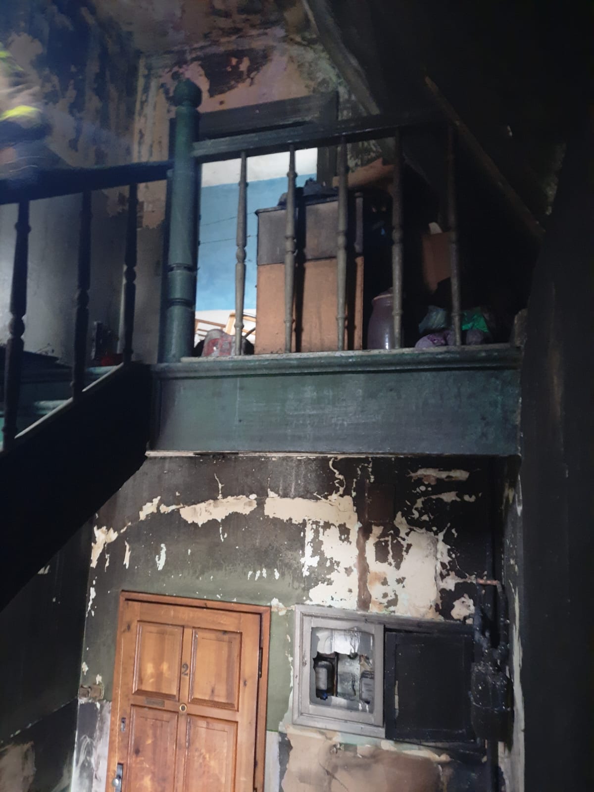 Po szczegółowym rozpoznaniu okazało się, że pożar powstał na klatce schodowej na wysokości pierwszego piętra, a promieniowanie cieplne pożaru odczuwalne było również na poddaszu.