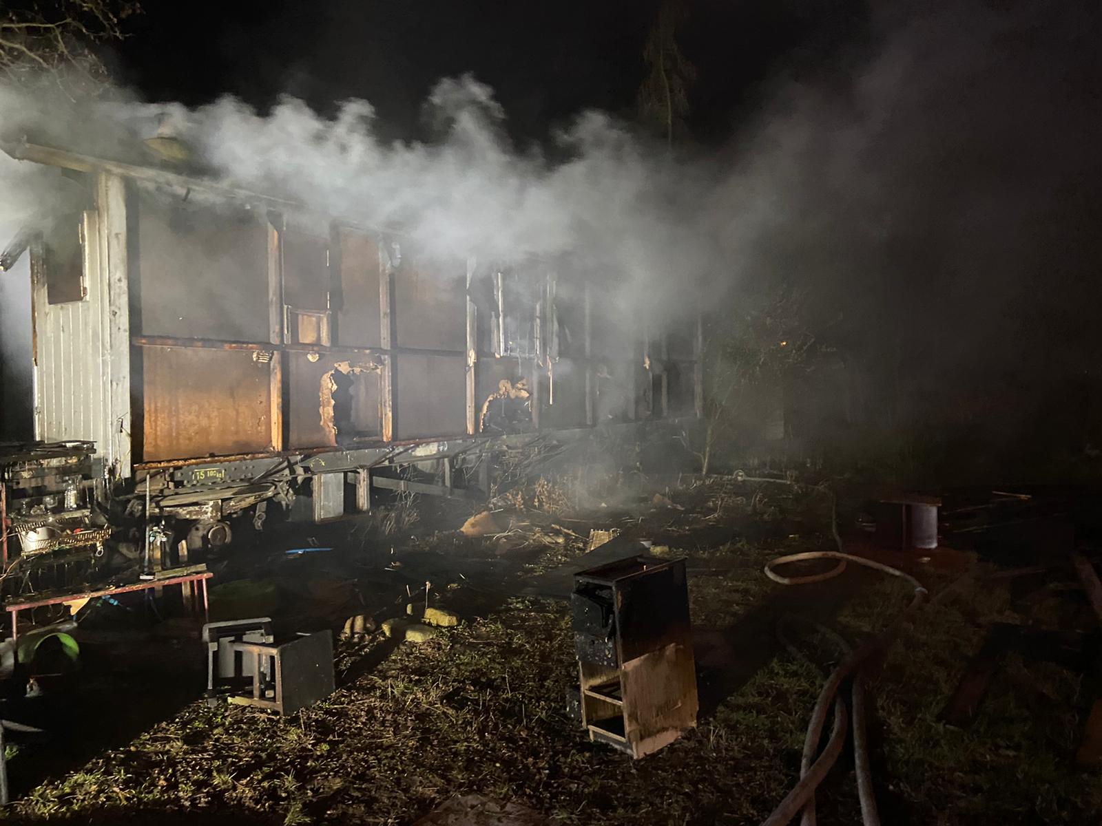 Ze względu na wielowarstwową konstrukcję konieczne było wdrożenie prac rozbiórkowych z jednoczesnym dogaszaniem zarzewi ognia, całość była monitorowana kamerą termowizyjną. O całym zdarzeniu poinformowano dyżurnego PKP - Stacji Wągrowiec, który przekazał numer telefonu do dzierżawcy mieszkającego w Poznaniu.