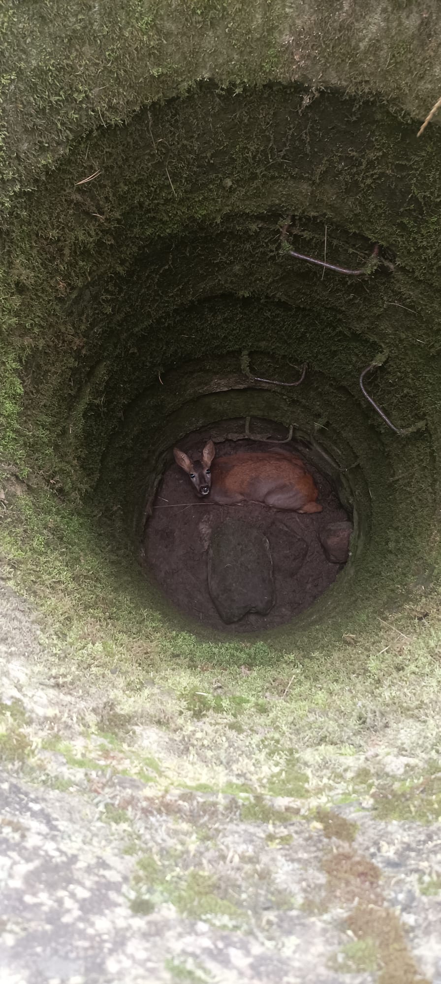 Po dojeździe zastępów jednostek ochrony przeciwpożarowej okazało się, że sarna znajduje się w studzience głębokiej na ok. 3 metry.