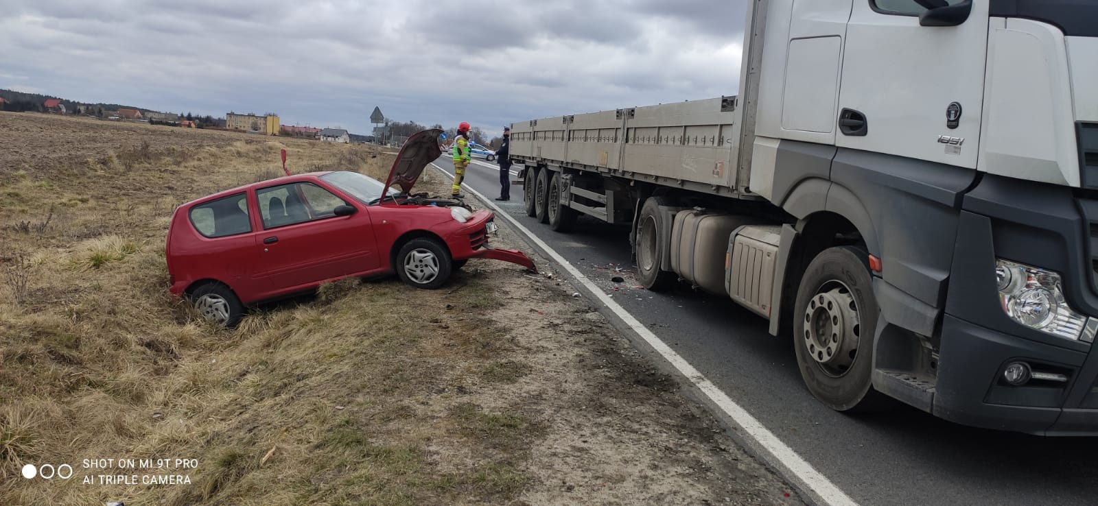 Dyżurny Stanowiska Kierowania Komendanta Powiatowego PSP w Wągrowcu 23 marca br. przyjął zgłoszenie , z którego wynikało, że samochód osobowy Seicento uderzył w naczepę samochodu ciężarowego stojącego w korku.