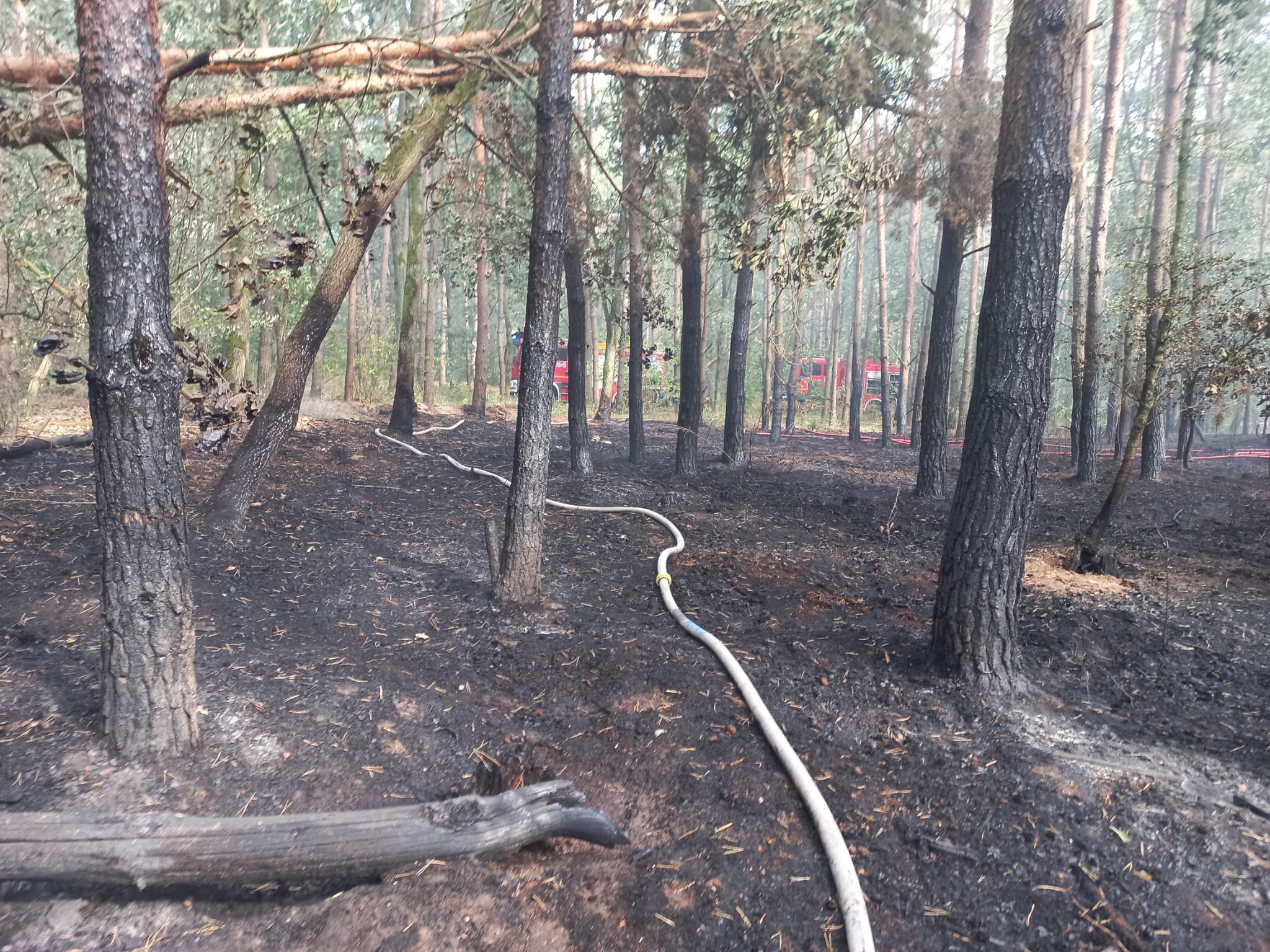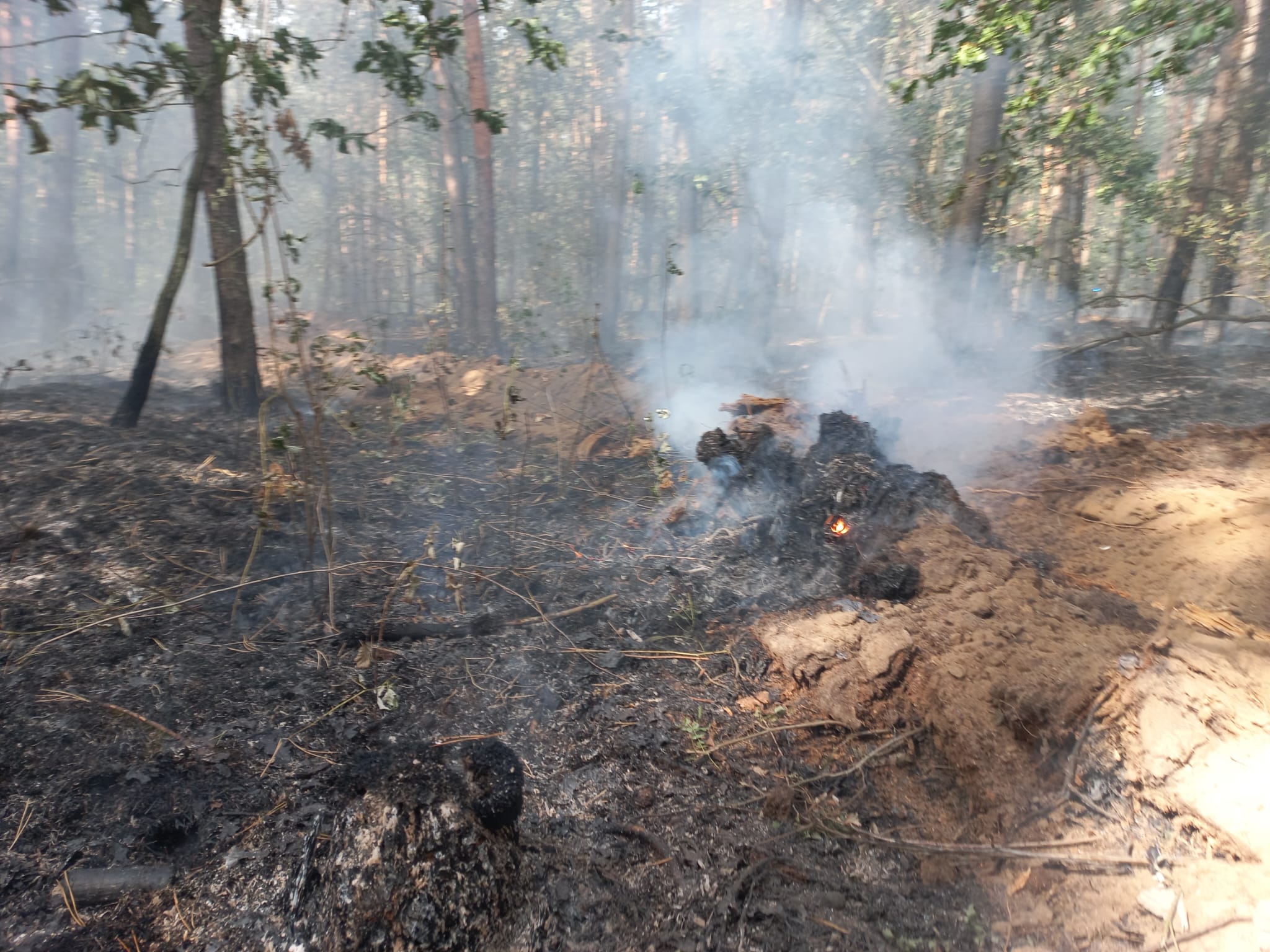 W ostatniej fazie działań strażacy przelali wodą cały teren pogorzeliska w celu potwierdzenie skuteczności działań gaśniczych i wykluczenia powstania dodatkowych zarzewi ognia. Obszar leśny, na którym powstał pożar został przekazany leśnikom, z zaleceniem 24. godzinnego dozorowania terenu.
