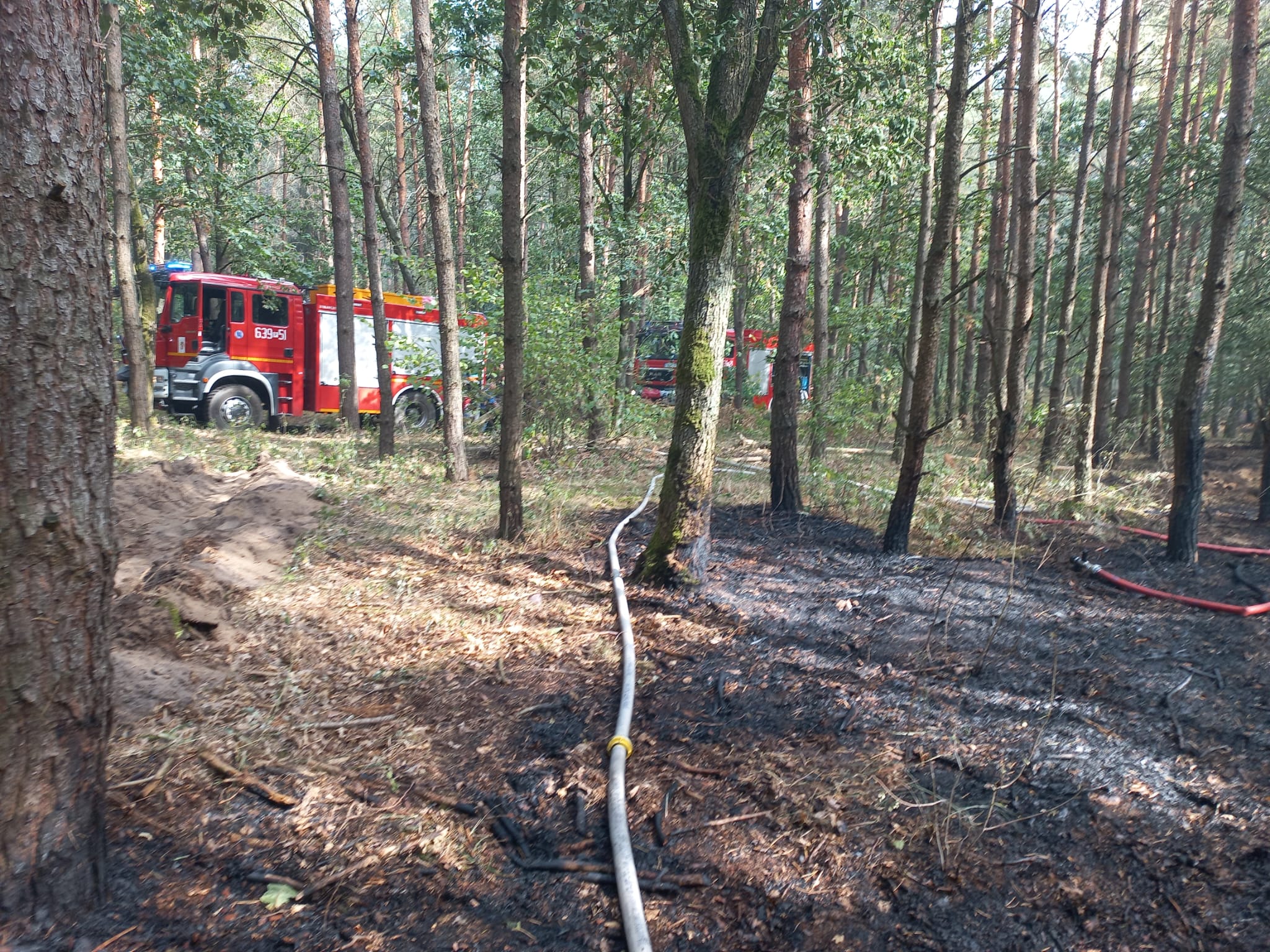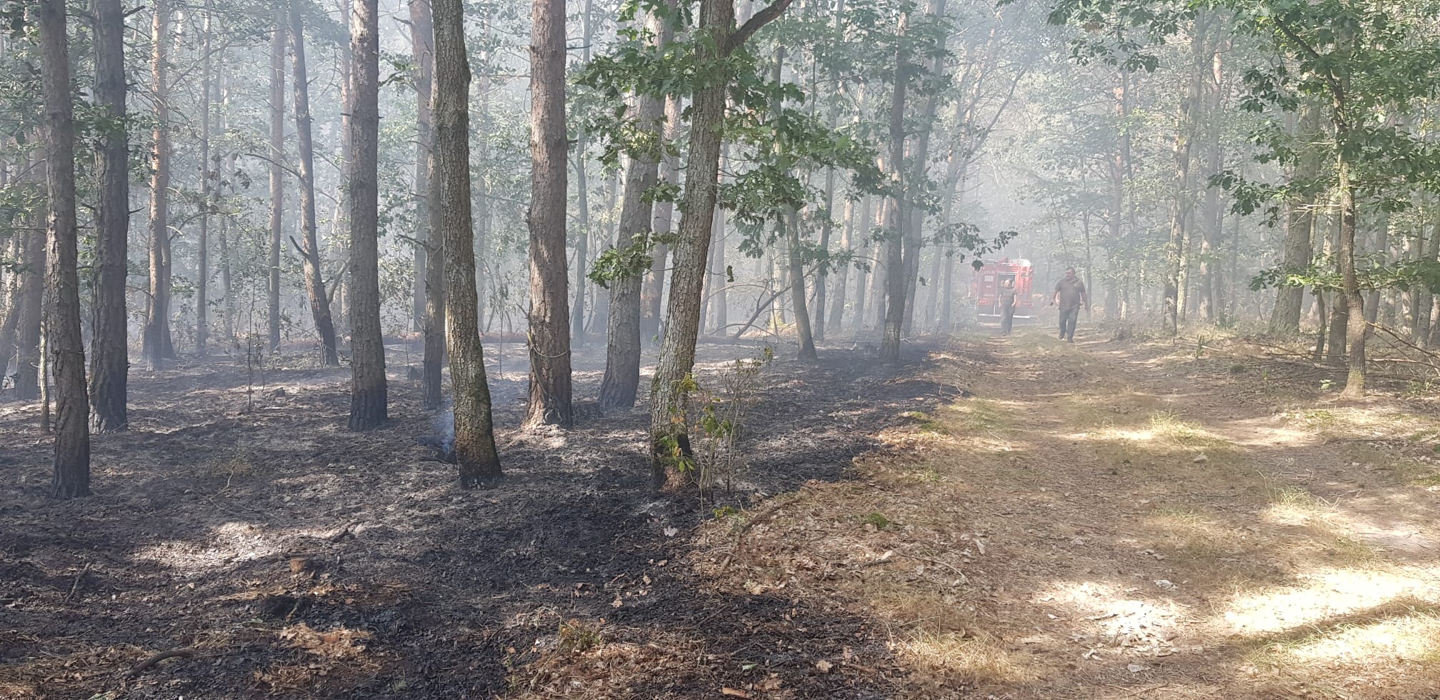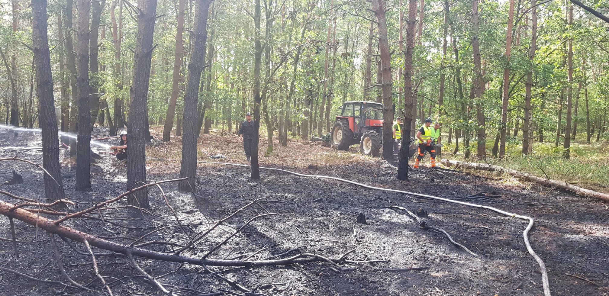 Dużym wsparciem dla jednostek ochrony przeciwpożarowej okazali się pracownicy Służby Leśnej, którzy ramię w ramię walczyli, z żywiołem wykorzystując przy tym ciężki sprzęt, który oborał powierzchnię, na której wystąpił pożar.
