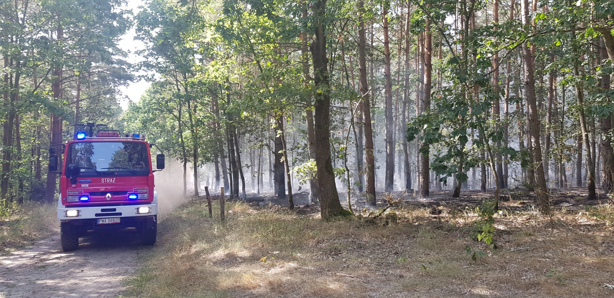 19 sierpnia br. kilka minut przed godziną 14. straż pożarna odebrała zgłoszenie o widocznym zadymieniu w lesie na odcinku od Wągrowca do Bartodziej.