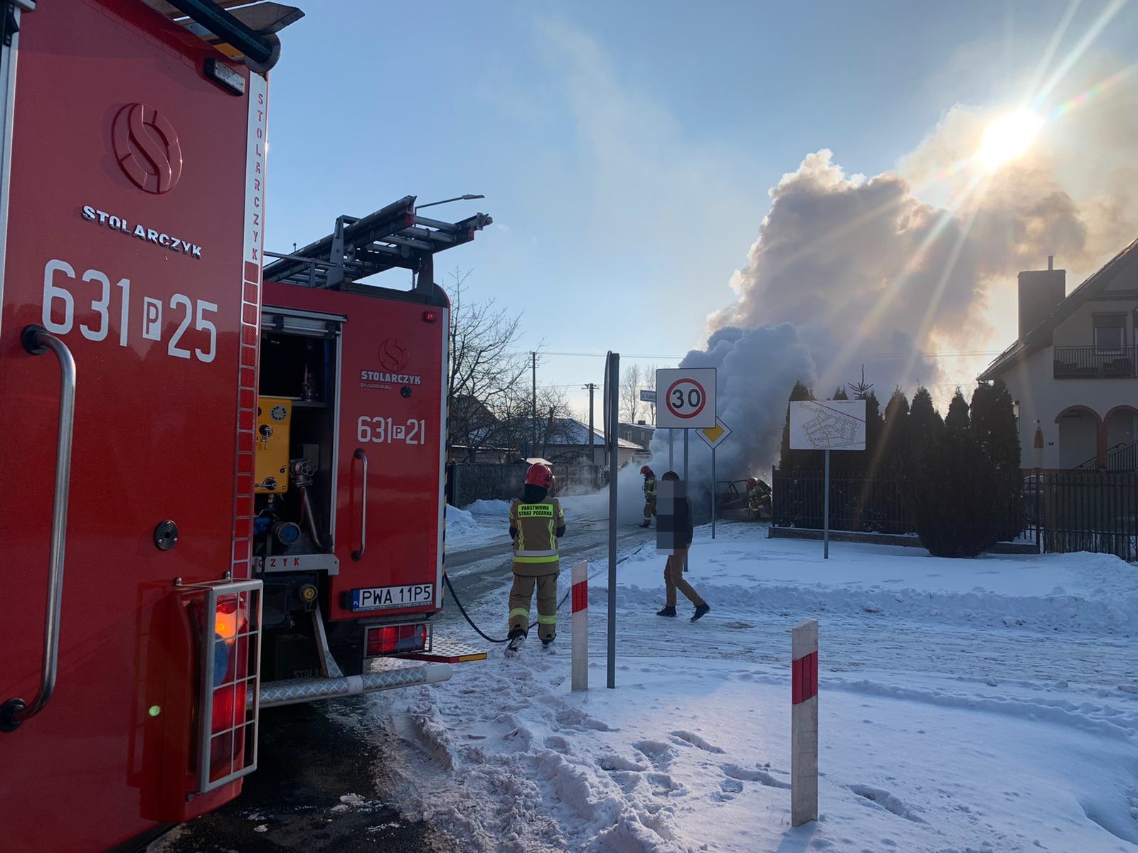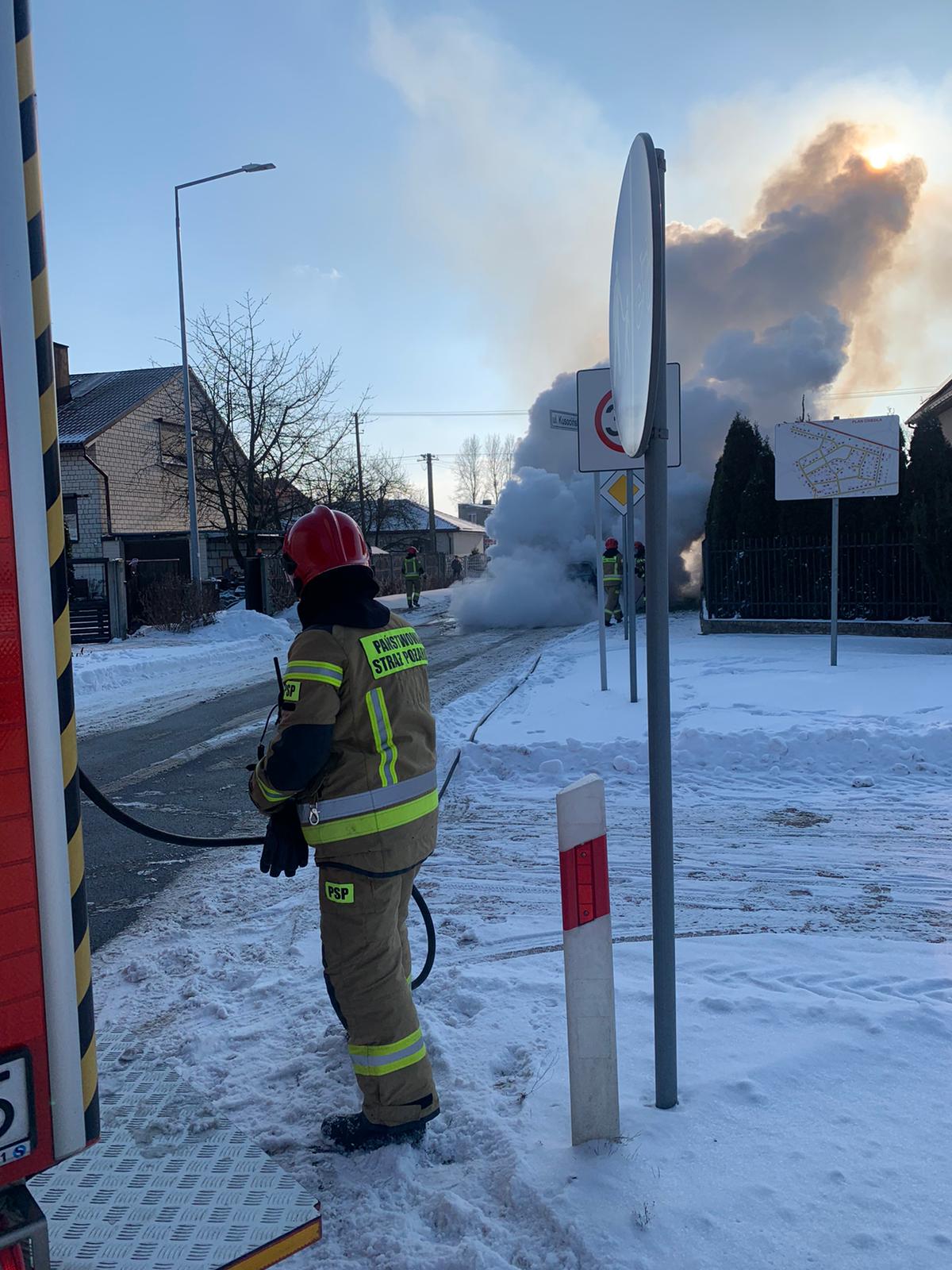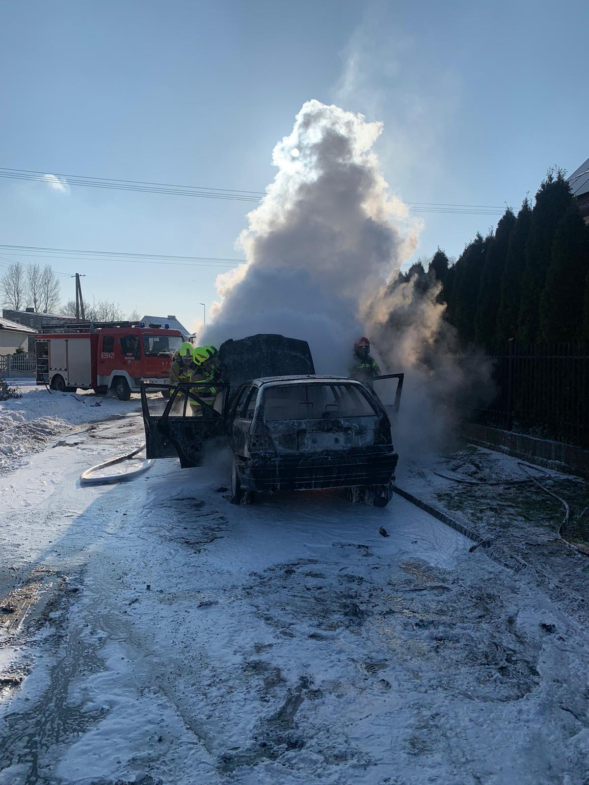 Po przyjeździe na miejsce zdarzenie pierwszych zastępów straży pożarnej okazało się, że pojazd osobowy w całości objęty jest ogniem.