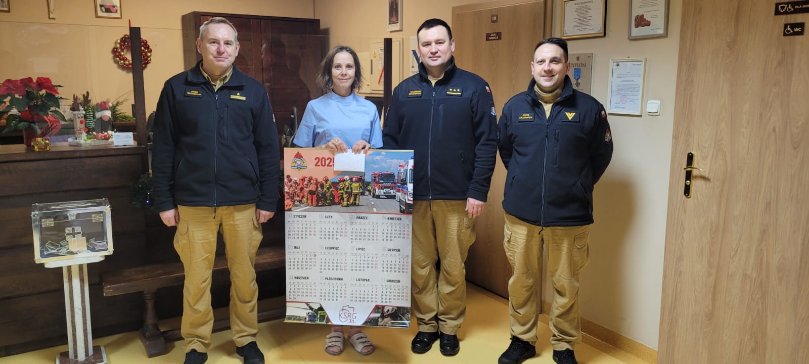 Tradycją stało się, że w Wigilię Bożego Narodzenia przedstawiciele Komendy Powiatowej Państwowej Straży Pożarnej w Wągrowcu, na czele z Komendantem Powiatowym mł. bryg. Jackiem Rochowiakiem, przekazali dla wągrowieckiego hospicjum podarunek finansowy na zakup niezbędnego wyposażenia rzeczowego.