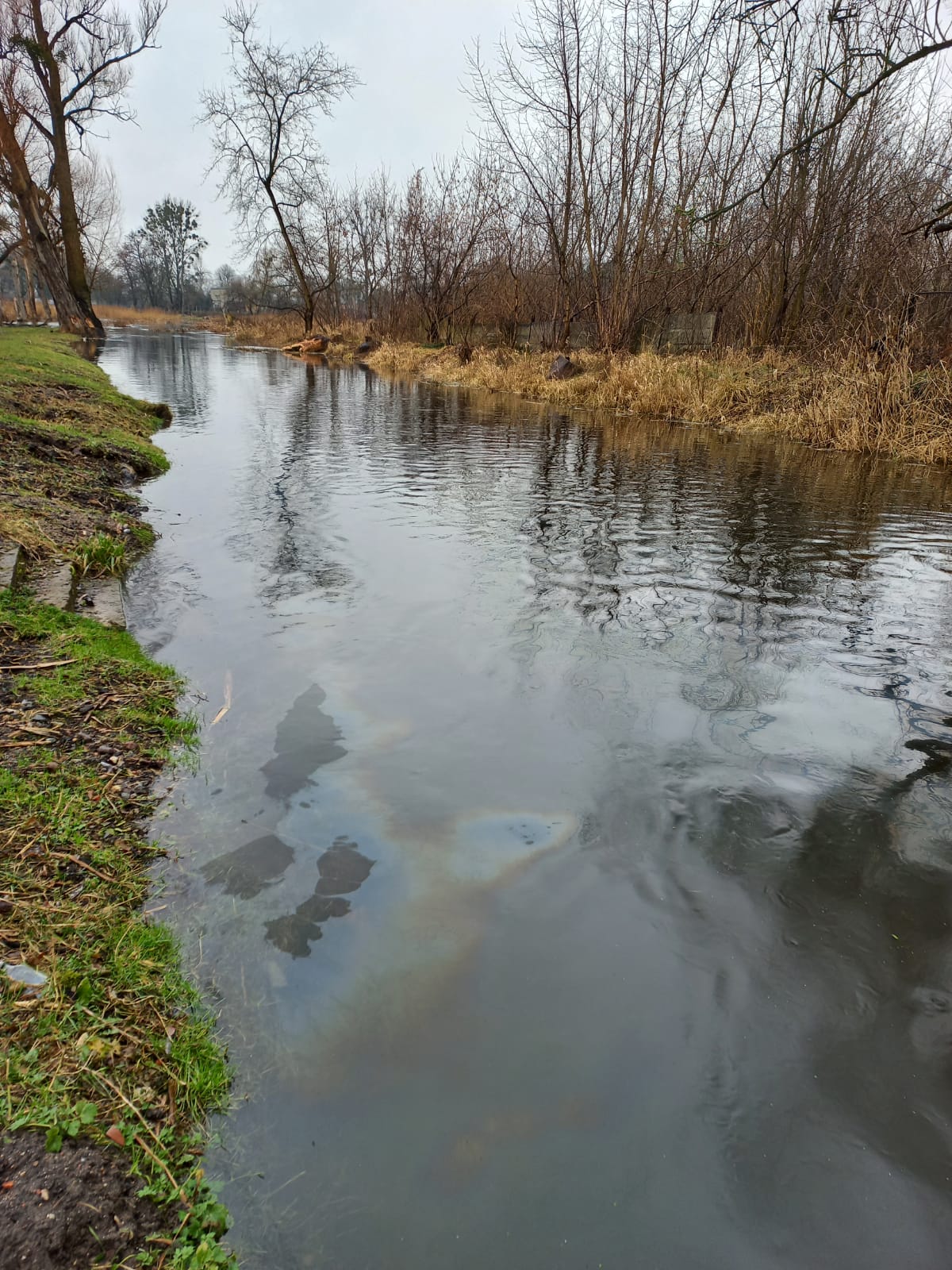 Podczas prowadzenia działań nastąpiło samoistne zaprzestanie wypływu cieczy z kanału burzowego.